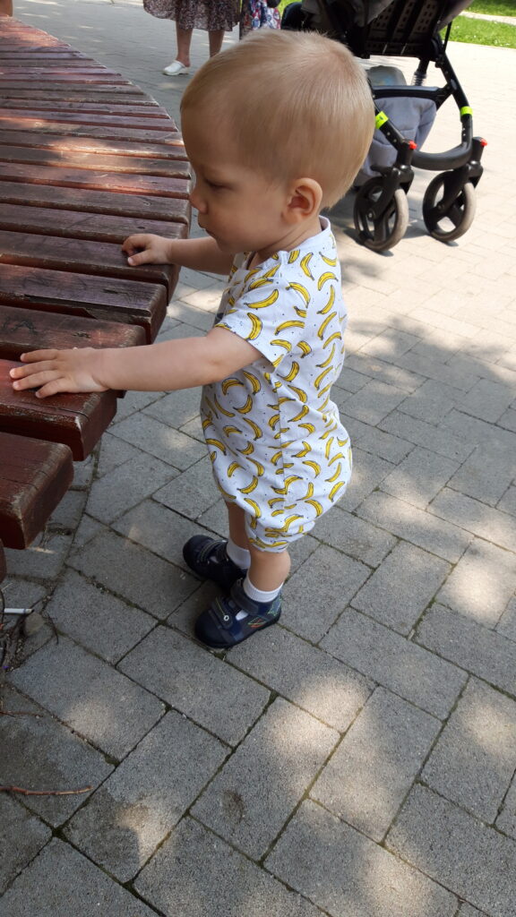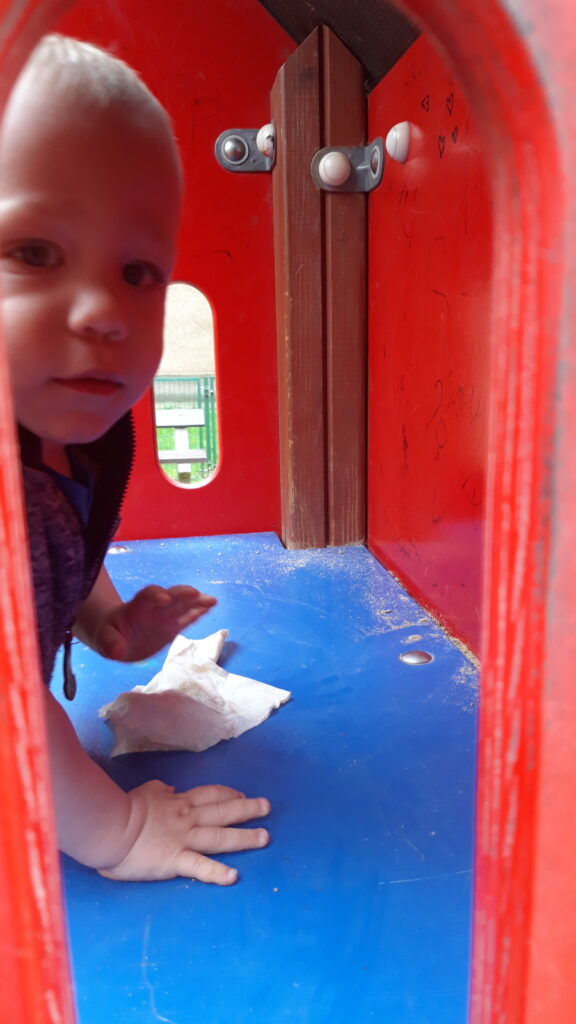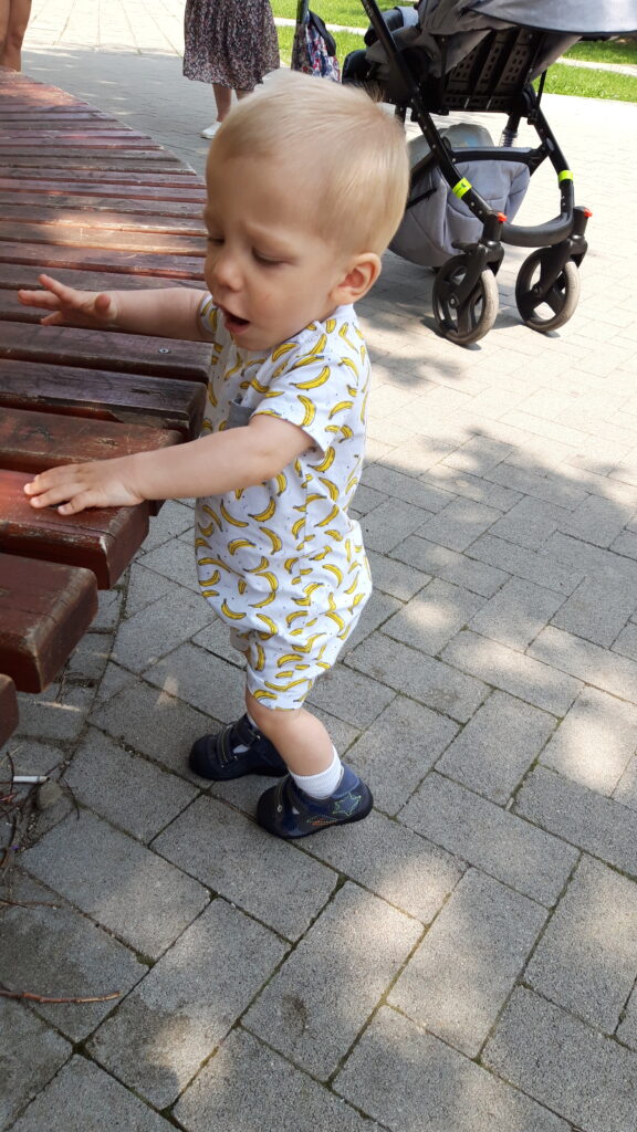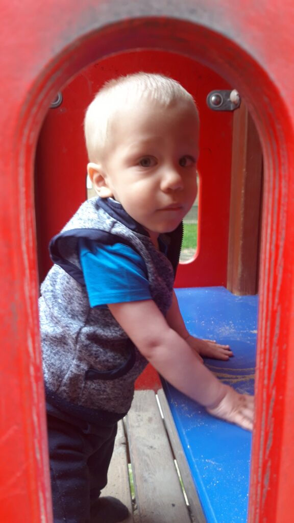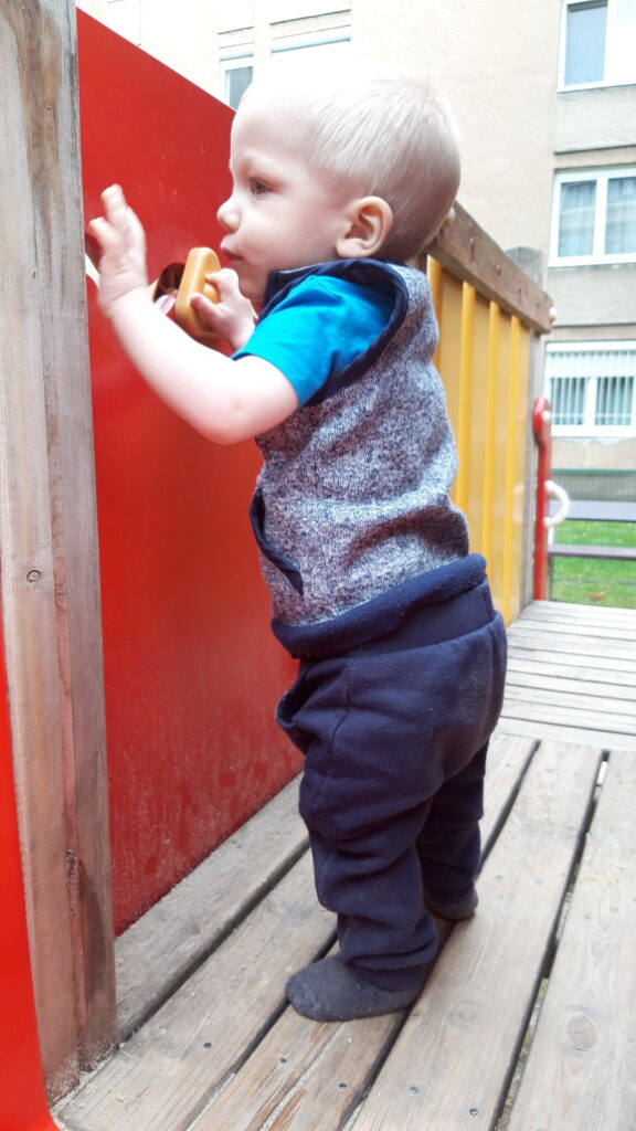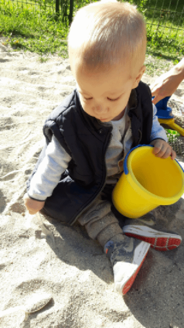 Már nagyon ki akartam menni, szerencsére délután jó idő volt. Állítólag zsiványosan ötltöztem fel. Persze felkészültem minden időre. Hiszen kellett is. Hol fújt a szél hol sütött a nap. Szerencsére a nasit nem vitte el. Így volt energi utánpótlásom a játszótérhez. Kellett is hiszen egyre ügyesebben dobom a homokot a vödörbe.