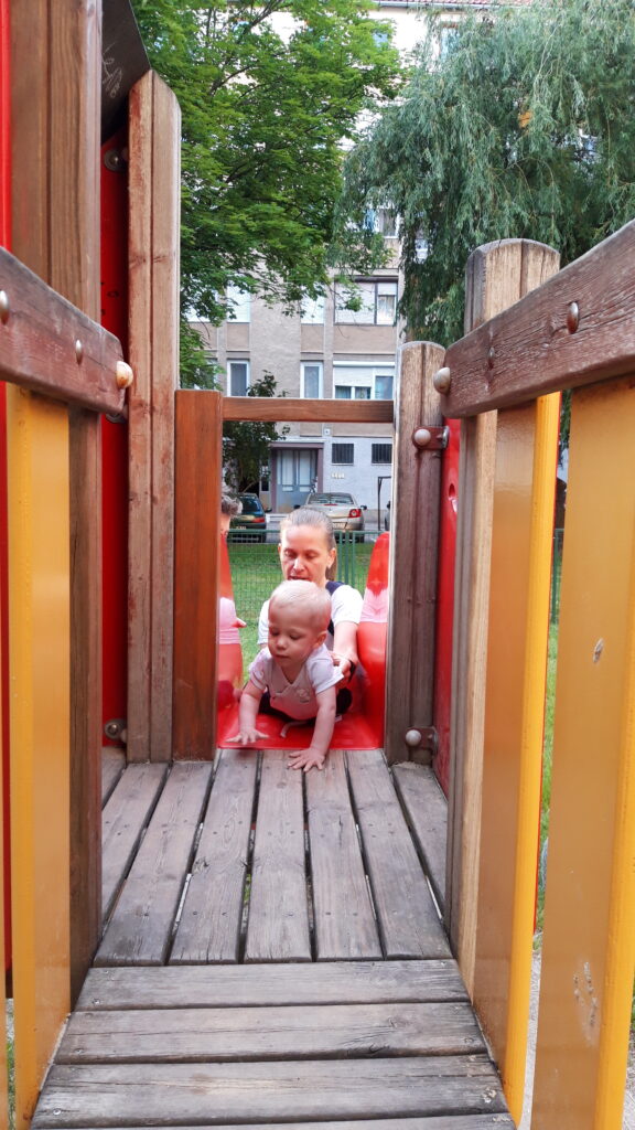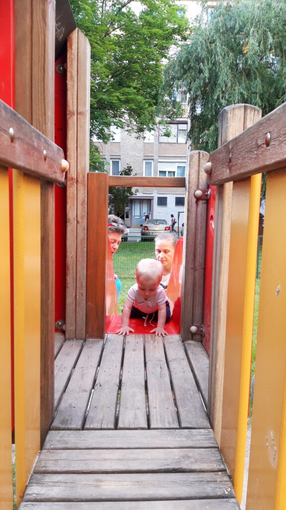 Azért estére se maradhatott el a nap lezáró csúszdázásom, meg is mutattam a nagyinak milyen rendben tartom a környéket és hogy tudok lecsúszni.