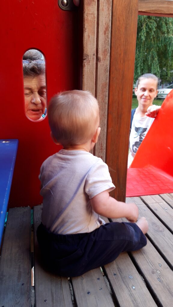 Péntek reggel még a nagyival ébredtem majd napközben még mindíg nyűglődtem a pocakom miatt. Jelentem javul a pelus helyzet, már nem pirosodok annyira. Délben bealudtam így bojkodtáltam a nagyi indulását. Végül is nem értem el a célomat mert állítólag van másik járat és azzal is hazaér időben. Na majd legközelebb jobban taktikázom. Délután ismét játszótér volt a program, a szomszédokkal is itt találkoztunk.