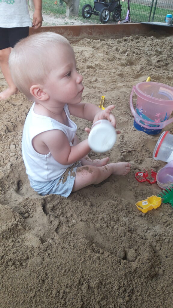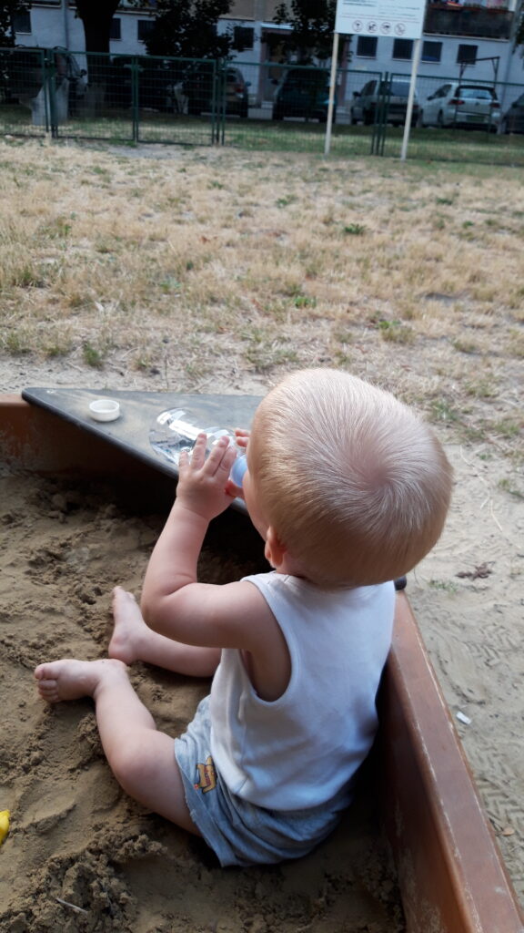Volt ott pancsolás, és építés, de a legizgalamasabb a csúzda volt. Én már egyedül szeretnék csúszni de azt mondják nem mehetek még mert a tartásommal vannak problémák. Én tartom magam ahhoz hogy csúszni szeretnék Ezzel nem tudom mi a baj. Semmi gond akkor legyen velem szülő aki felvigyáz. A játszótér után, már vártam a vacsorát. Hé valaki nekem vacsira tejes csokit adott!