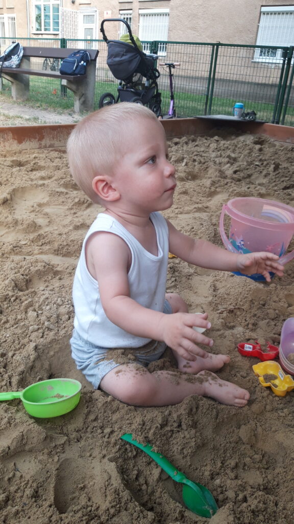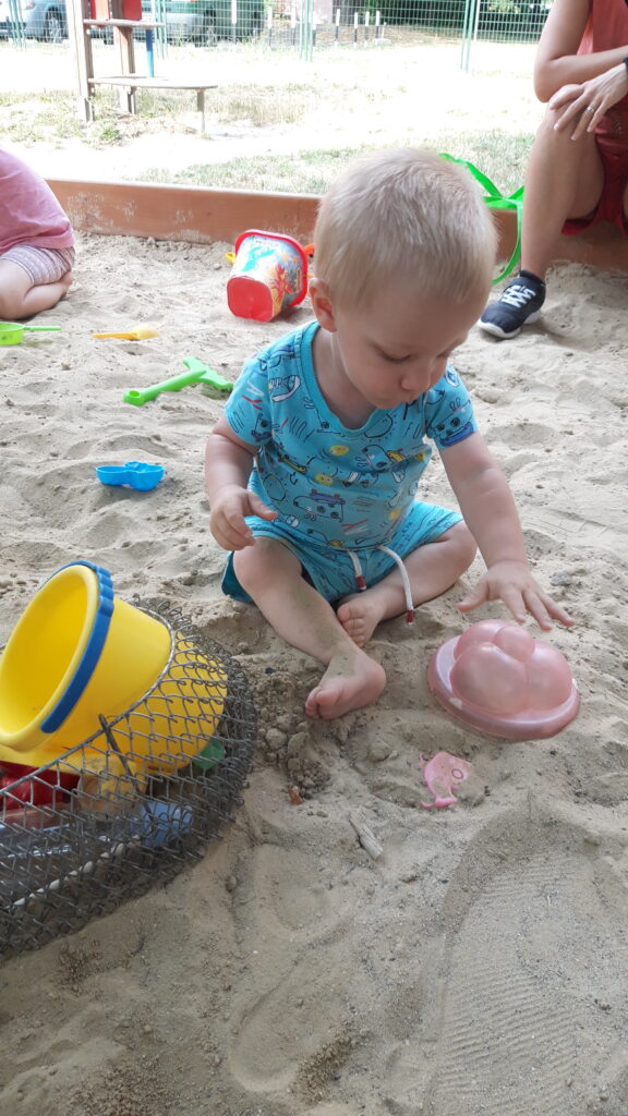 Kedd reggel nagyon nem akartam elengedni Apát dolgozni, de csak megszökött. Délután lementünk a játszótérre éppen nem volt ott senki ezért a szülőket nekiálllítottam a homokozó felásásának. Nem volt egyszerű figyelni őket, közben meg az érkező pajtásokat leszervezni, ki merre játszon.