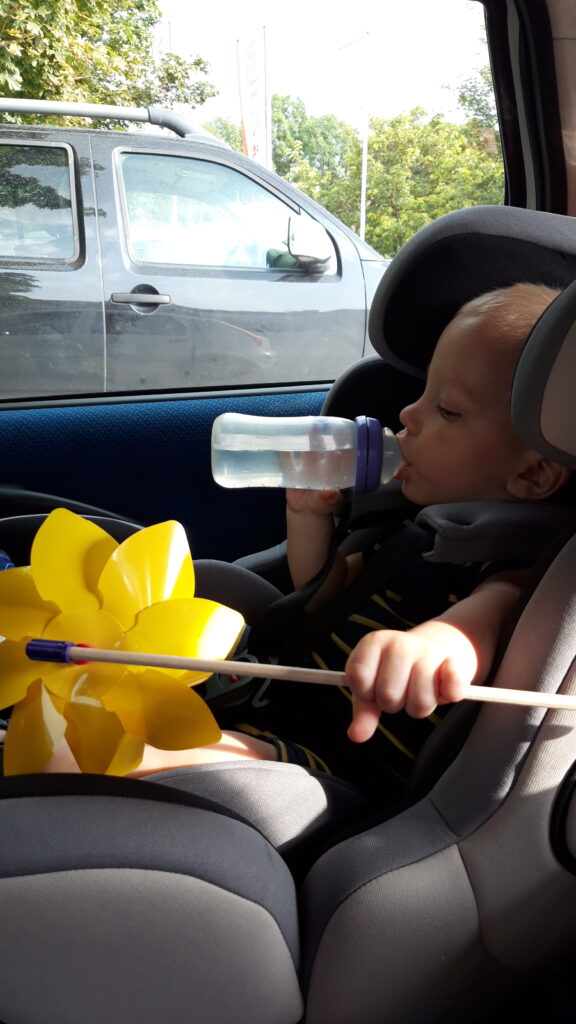 Szerda reggel korán ébredtem így Apával volt idő bohockodni. Anyát hagytuk aludni. Délelött jól el voltunk, még vendég is volt nálunk. Most igazán bemutathattam a rejtett tudásomat. Amíg ment a hideg levegő addig oda mentem a dobozhoz amiből jött segítség nélkül. Délután is a verdával való csapatás elött Anya feladta nekem a cipőt én pedig át togyogtam a kijárathoz. nem volt nagy táv de minden lépés számít. A verdával csapattunk egy kört majd Apát is felszedtük vele bohóckodtam hátul. Azért jó volt már haza indulni mert éreztem átnedvesedett a pelusom. Persze a vásárlással nekem is esett le potya cucc. Kaptam szélforgót, hazafele ki is próbáltuk Apával a htásó ülésen.