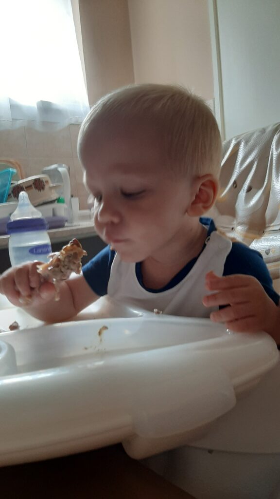 Szombaton aztán pörögtek ám az események, reggel már korán félébredtem és Apával bandáztam. Anyát hagytuk aludni majd közös reggelit nyomtunk. Nem nagyon voltam éhes de ha már az asztalhoz ültettek akkor bekramoltam pár falatot. Délelött a technikai kötyüket bütyköltem a nyomtatót ha harmincszor nem indítottam el akkor egyszer sem majd zenét kevertem a nagy rádión. Jó kis mókák voltak. Majd Apát kicsit magára hagytuk Anyával elmentünk bevásárolni és kaját is hoztunk. Ebédkor még nem voltam se éhes de azért a csirkecsontról a husit lerágtam.