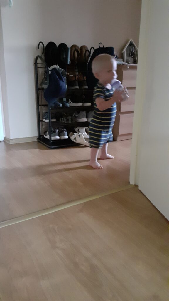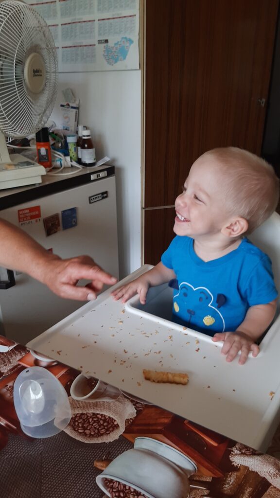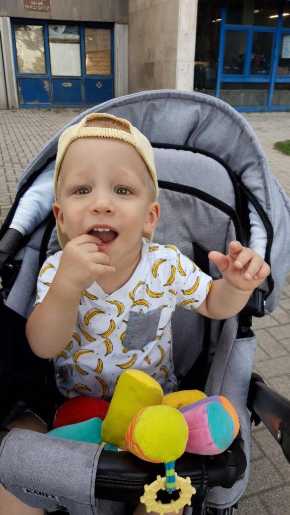 Mentünk tovább vásárolni. Apával mókáztunk amíg a kenyér sarkát ettem tetszett, hogy nagy kengurú módjára elöttem ugrál. Teljesen kész voltam tőle Ő is tőlem mert a végén már kifáradt. Hazaérve vacsiztunk és nem nagyon kellett altatni teljesen kifáradtam.