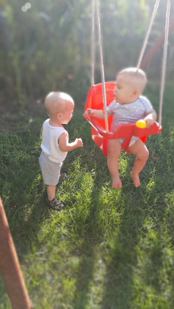 Na mikor már mind a ketten fenn voltunk akkor kezdődött ám a bulizás. Rendbe rakták a hintát a szülők így már mi is használatba tudtuk venni.