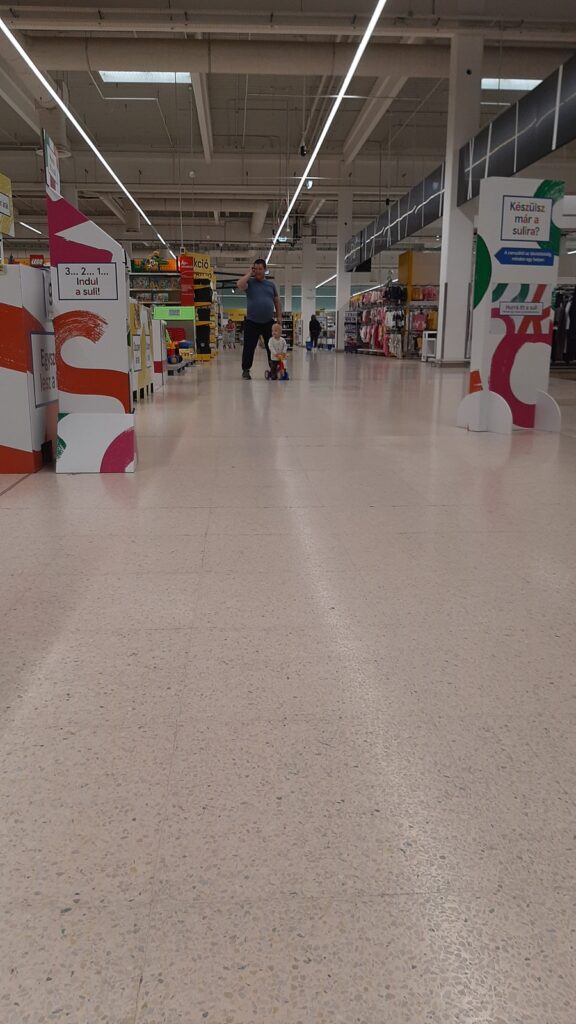 Na én nekem se kellett több bejártam a fél áruházat Apa nem győzött utánam lépegetni. Majd bevásároltunk nekem popsi törlőből. Itt is az üzletek között bejártam az többit, nem akartak bemennni a cipős boltba de engem érdekelt szóval végigmentünk az üzleteken.