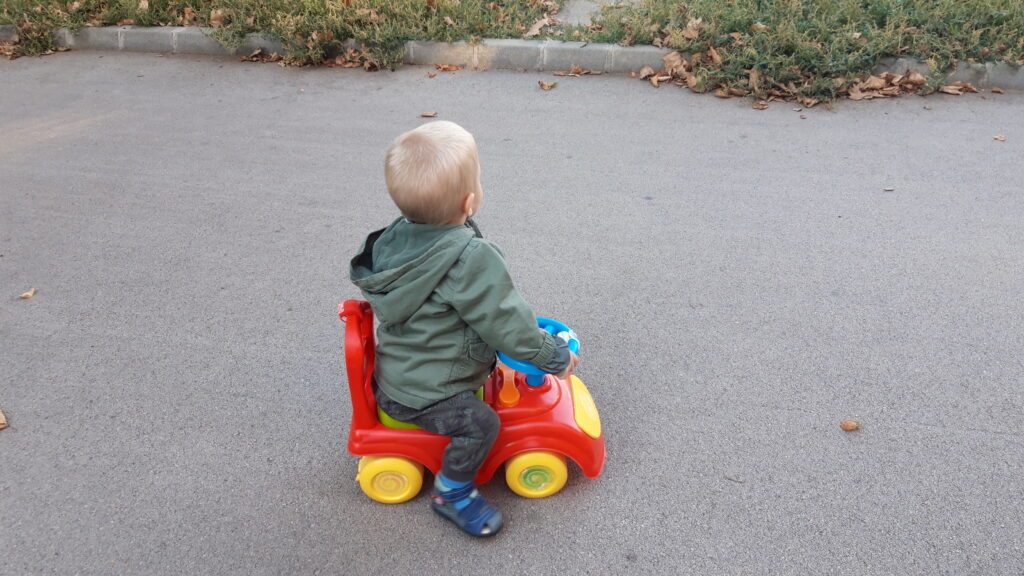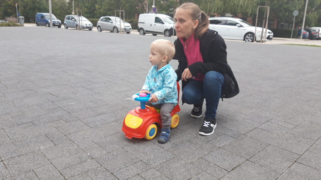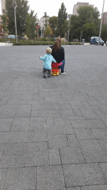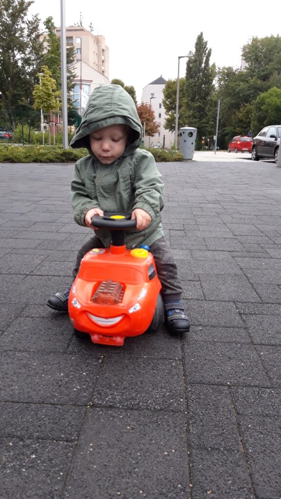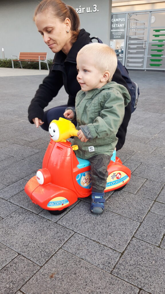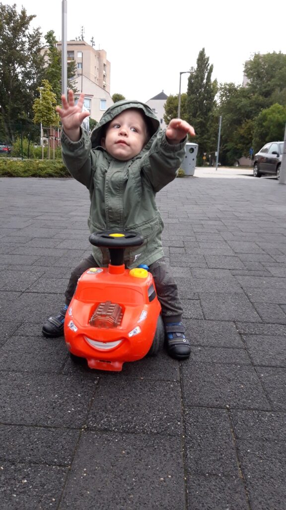 Délután indulás előtt a lakásban kergetőztünk majd lementünk a legújabb verdámmal a térre bejáratni.