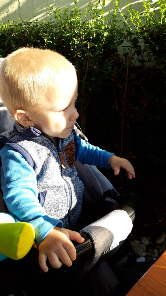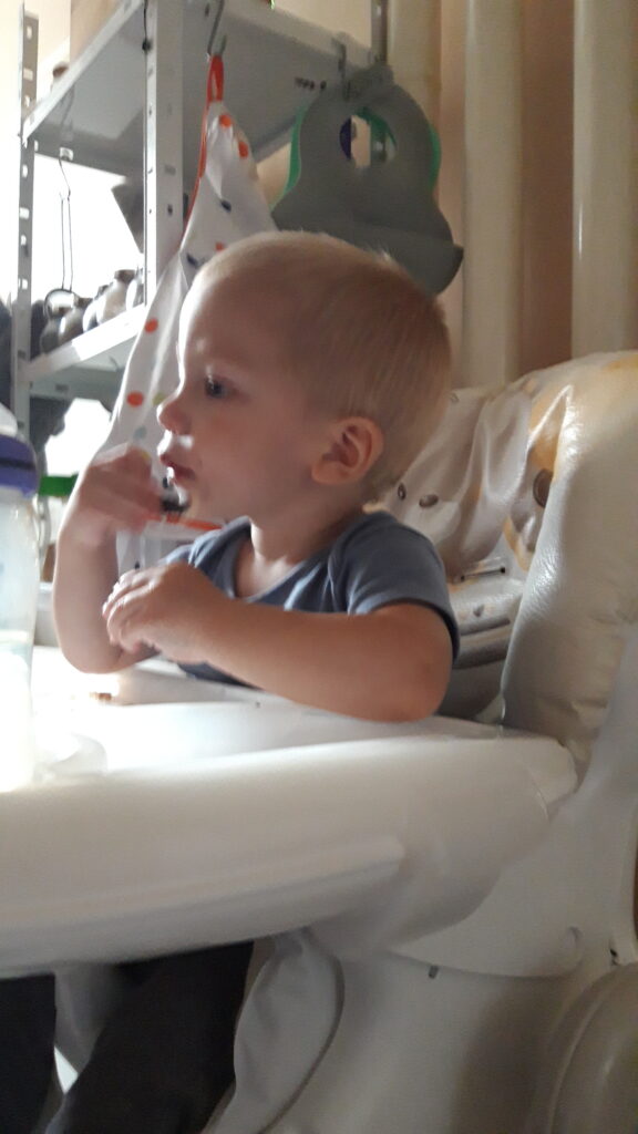 Szerdára virradóra többször riadóztattam Anyát mert nehezen kaptam levegőt. Apa valószínűleg lefertőzött engem is. szóval nem olyan jó nagyot tudtam aludni ez kihatott a napi kedvemre is. Reggeli sóskifli után már megint csomagot láttam és a szürke utazó táskát. Ohh akkor ma biztos, hogy megyünk valamerre. Késöbb kiderült irány a nagypapi. Aki már várt bennünket. Sajnos az út közben történt egy pelus átszakadás, így nem teljeses outfittemmel üdvözöltem a papit-hanem csak egy részletekbe.