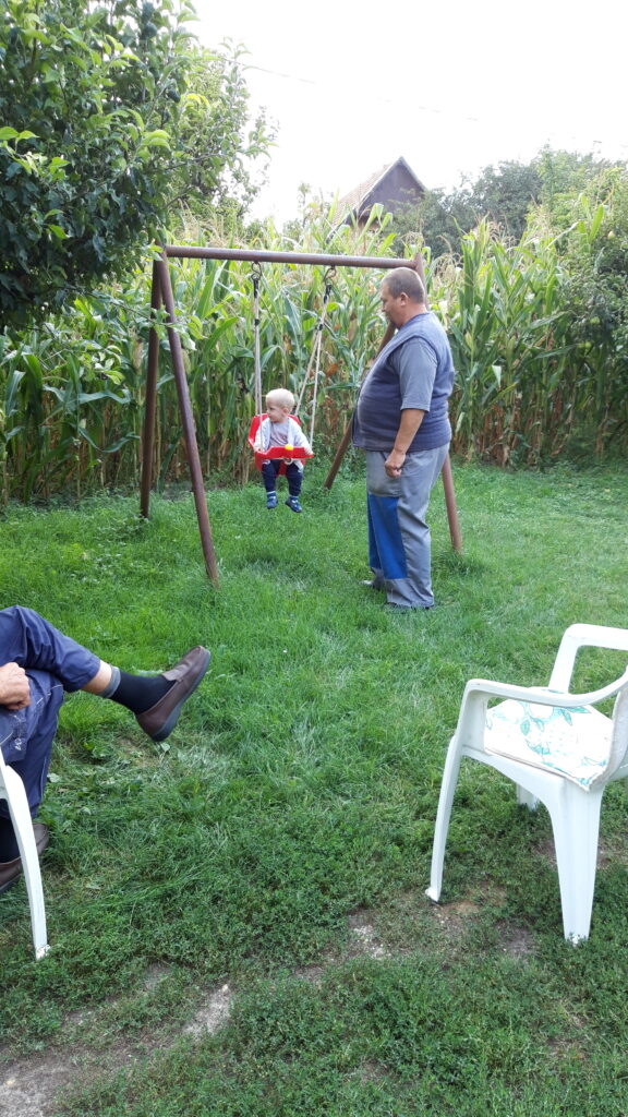 Apával egyből mentünk is csobbanni. Ohh a papinak igazán nagy kádja van. Fürdés után amíg készült az ebéd kimentünk a homokozóba és megnéztem a jószág állományát. Ebéd után kicsit aludtam, de alvás ébredés hinta, pakolsá un félig alvás. Itthon vacsora alvés