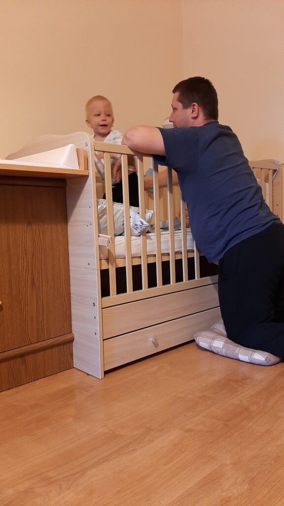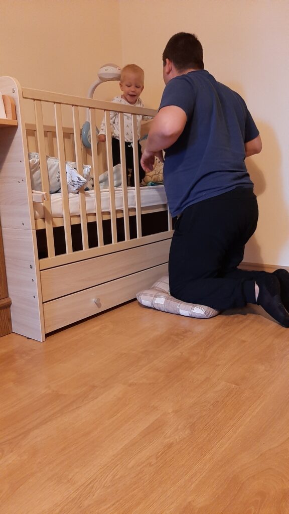 Hazaérve ebéd után jó nagyot aludtam. Majd délután jó nagyot mókáztunk Apával az ágyamon. Nem is értettem, hogy hogy fér be a feje az ágyamba.