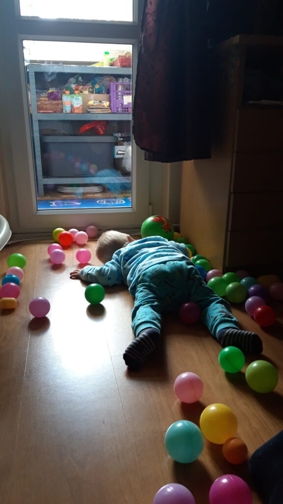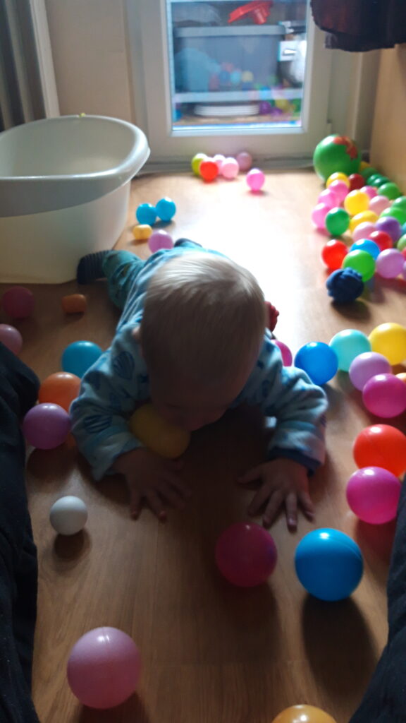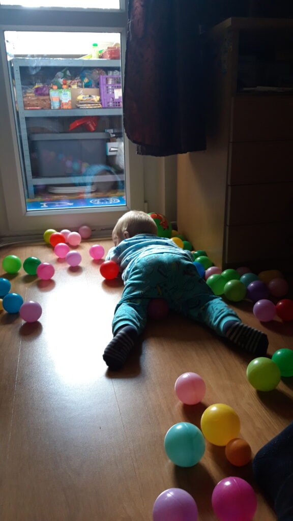 Vasárnap igazán őszies napunk volt. Hajnalban Anyát riasztottam, csináljon valamit Apával mert már én sem tudok aludni a horkolásától. Így mi különcködtünk. Reggel viszont Apa mellettem ébredt fel. Regglire rántottát ettünk, nem voltam nagyon éhes, de pár falatot betoltam. Majd délelött jöhetett a játék. Apával labdáztunk. Én kipakoltam az összess labdámat.