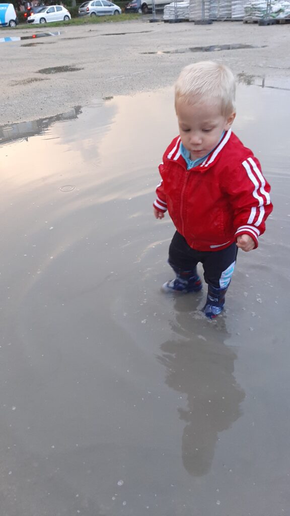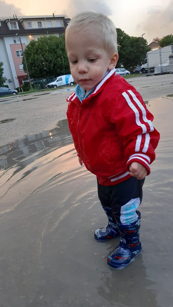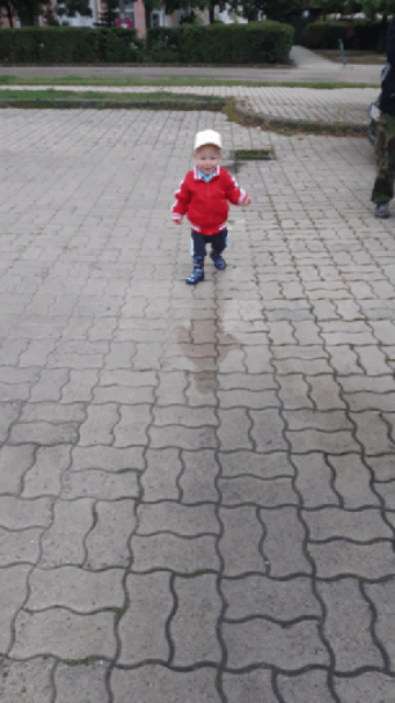 Délre elpilledtem addigra már volt ebéd is. Nem sokat ettem a májból, inkább álmos voltam már. Így a délutáni sziesztámra fordultam. Nem volt hosszú az alvásom mert ez a köhögés mindíg felébresztett. Így délután már nyűgös is voltam, sőt már minden alkalommal mentem volna ki. Csak nem akartak a szülők kimenni. Helyette pakoltak. Én is besegítettem. Végre nagy sokára csak lejutottunk. Nagyon ellenkeztem mert nem a normál cipőimet kaptam. Helyette hosszú szárú gumi csizmát Még nem éreztem hogy ez jó nekem nehezebben tudtam benne járni. Kinn a levegőn engedélyt adtak a szülők, hogy mehetek a pocsolyába.