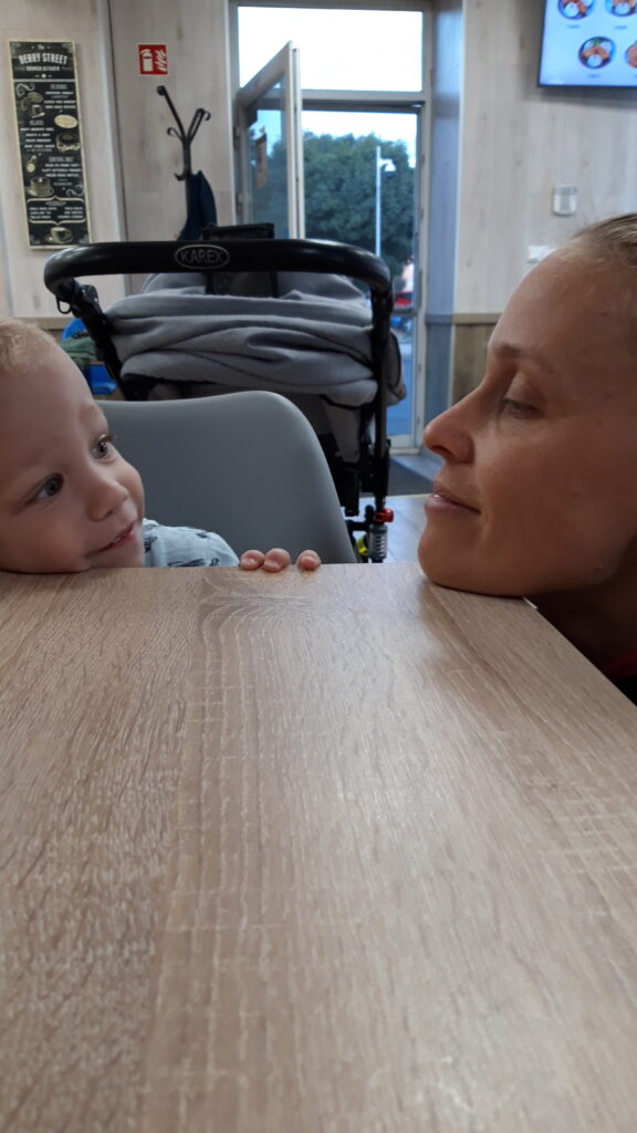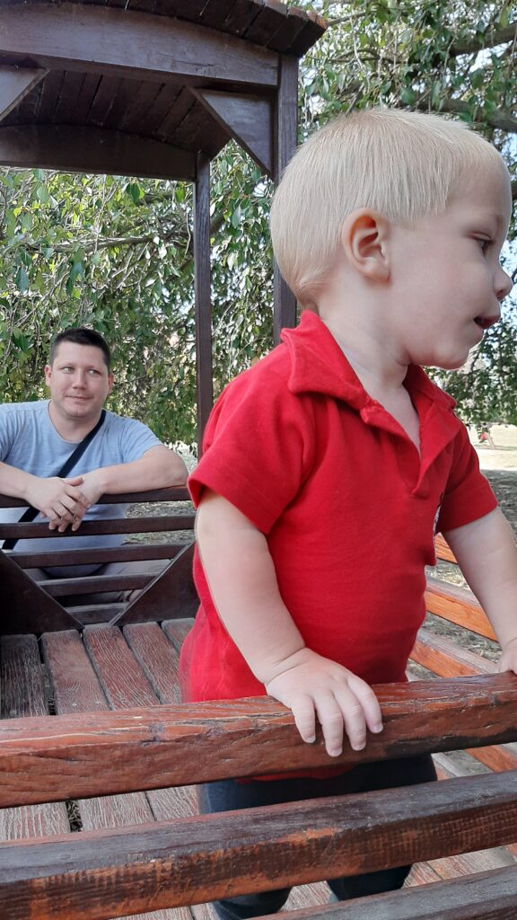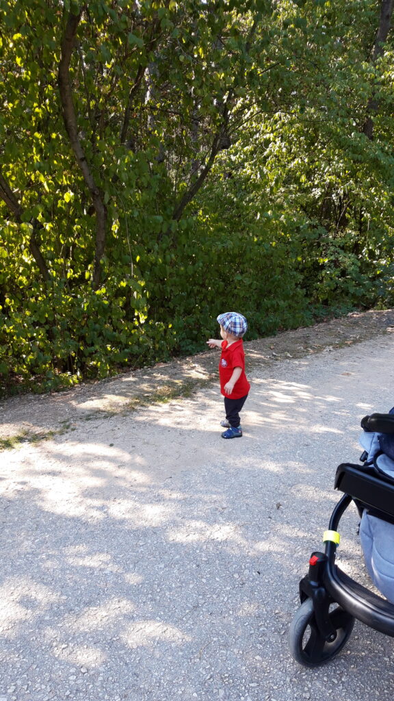 Vasárnap aztán olyan történt amiben eddig nem volt részem. Reggel még nem nagyon voltam éhes de egy kis kakaót felhörpintettem. Majd megint előkerült a szürke táska. Ohh te jó ég hova megyünk. Még ekkor nem tudtam hogy se a papihoz se a nagyihoz, hanem túrázni megyünk. Aszta baba cipő koptató mindenét milyen nagy sétát ejtettünk és milyen állatokat láthatutnk ma.