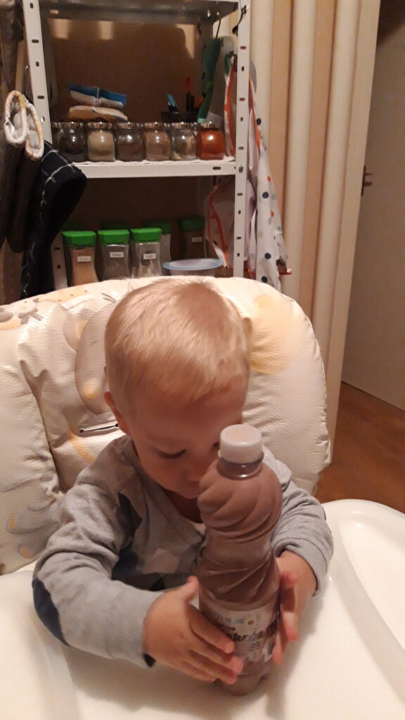 Találkoztunk Regi nénivel. Elvoltunk vele, majd elgurultam a bádog tehénig és hoztunk tejet. Vacsorára még kakao-t ittam. Fürdés már biztonságosan a nagy kádba ment. Altatni ma sem kellett.