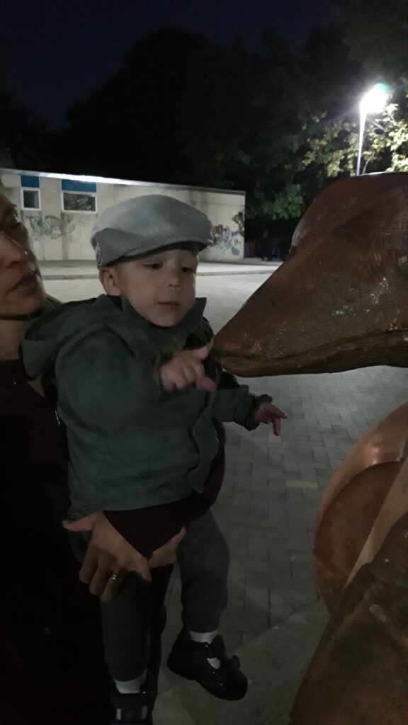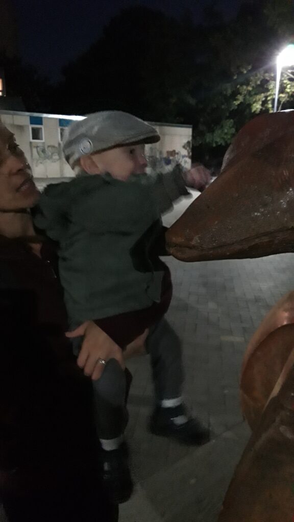 Este még elmentünk egyet sétálni, nézni nekem új cipő. Sajnos nem jártunk sikerrel mert valahogy nem passzolt a lában ésa cipő. Hazafele újra találkoztunk a kigyó szoborral és újra megsímogattam.