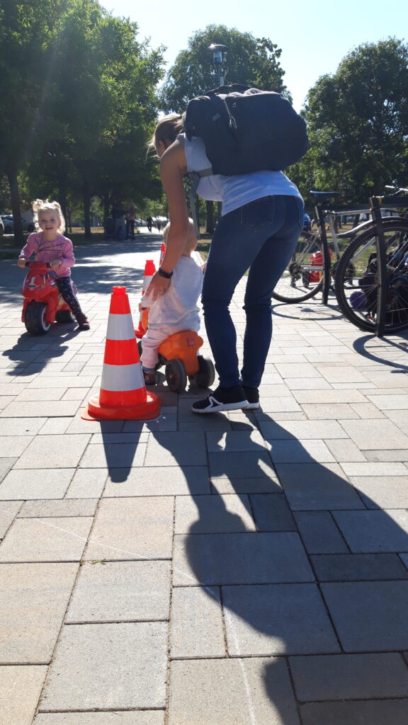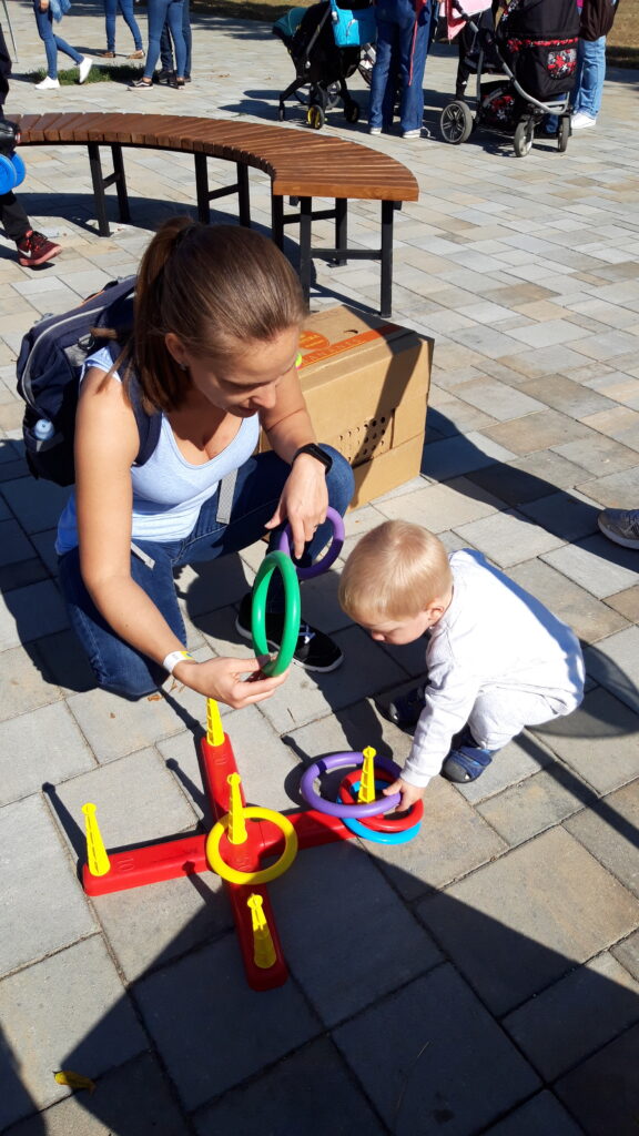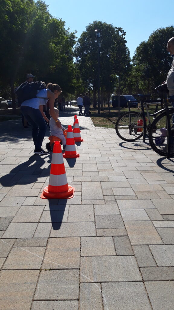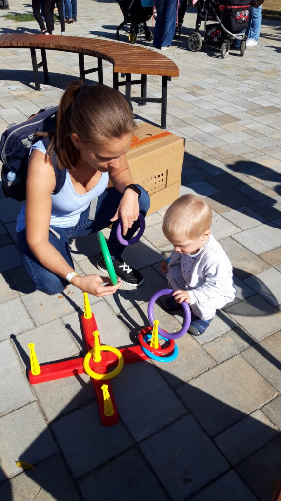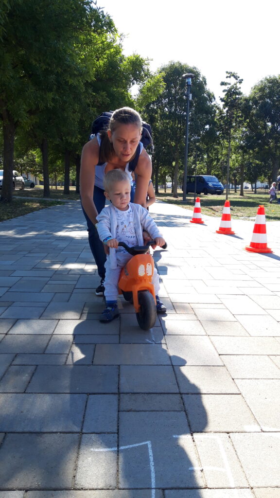 Szombaton reggel felébredés után Apa készített reggelit. Bekajáltunk majd elmentünk bevásárolni. Vásárlás után egy nagy térre mentünk sok új pajtással találkoztam. Nagyon sokan voltak és új dolgokat próbáltam ki.