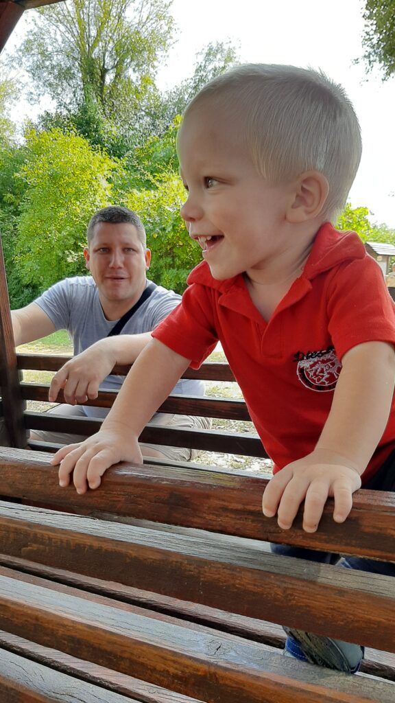Megnéztük a gyerek részleget is csúszdáztunk felmásztunk a várba. Vonatoztunk is egyet. Csupa mókás dolgokat csináltunk.