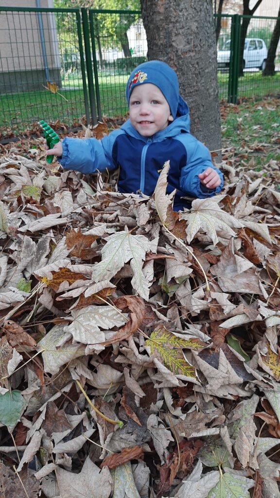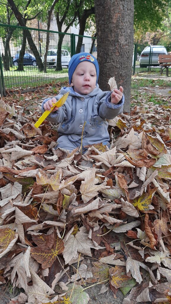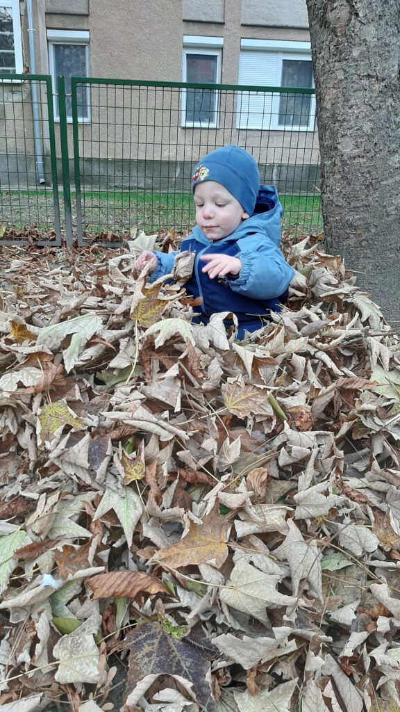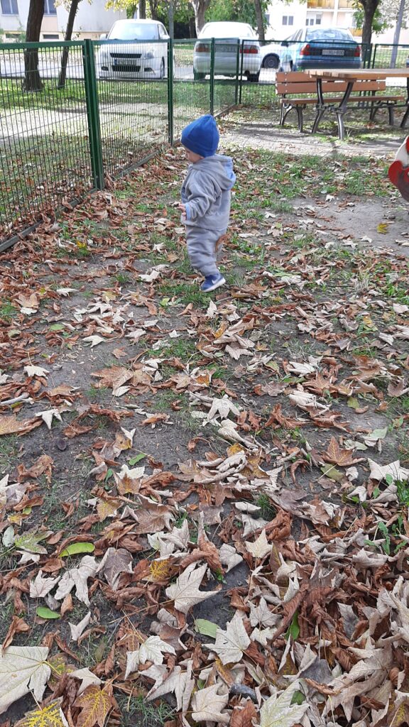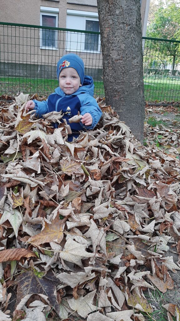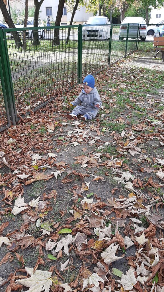 Hétfőn reggel hajnalban behúztam az éjszakai üzemanyagomat így reggelihez kapott tejbe papai annyira nem is volt érdekes. Megvártuk míg kicsit melegebb lesz és kimentünk a játszótérre. privát játszóterünk volt. Anyával elrendeztük a faleveleket egy kupacba, majd befészkeltem magamat bele.