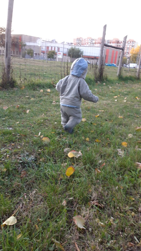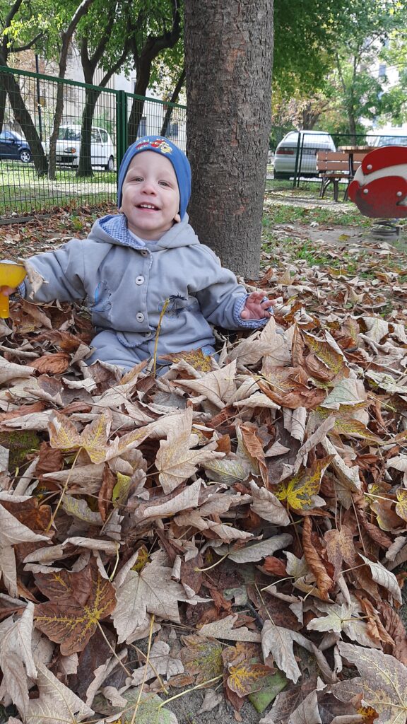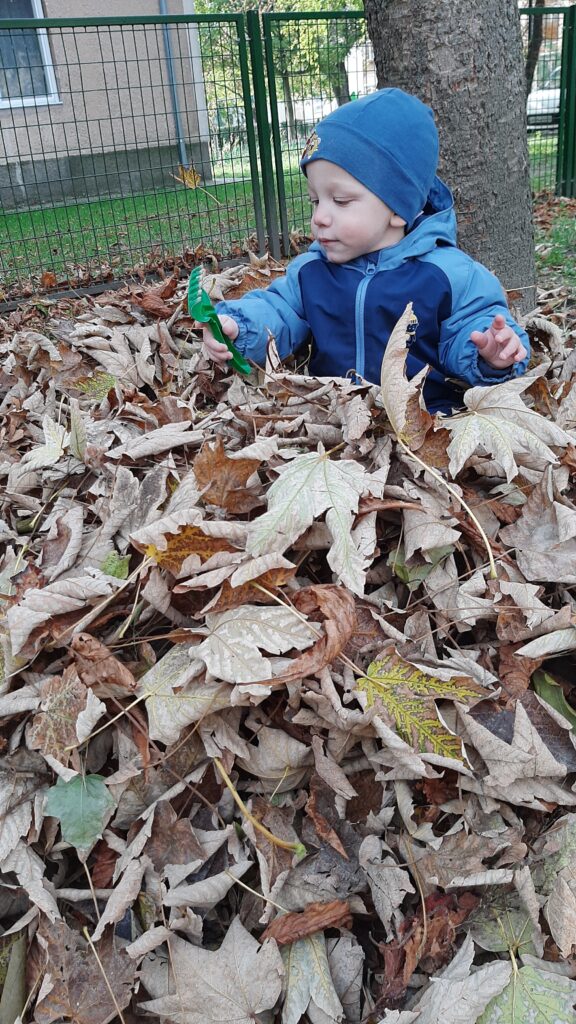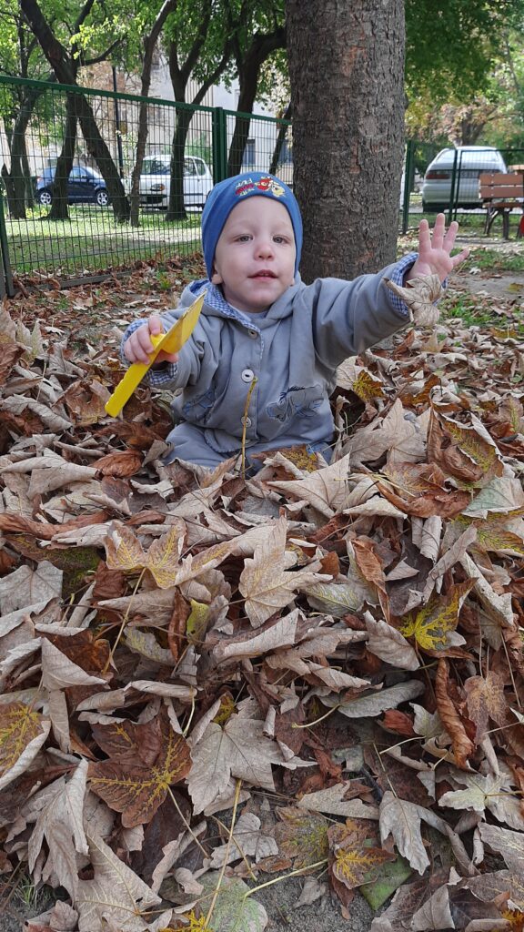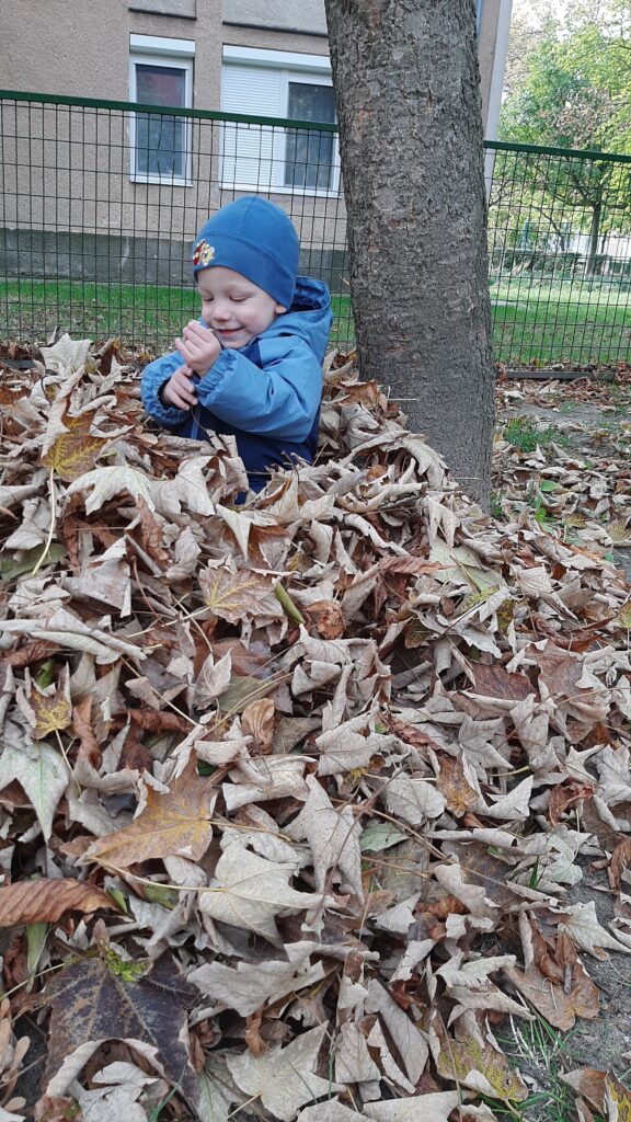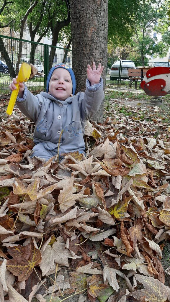 Hétfőn reggel hajnalban behúztam az éjszakai üzemanyagomat így reggelihez kapott tejbe papai annyira nem is volt érdekes. Megvártuk míg kicsit melegebb lesz és kimentünk a játszótérre. privát játszóterünk volt. Anyával elrendeztük a faleveleket egy kupacba, majd befészkeltem magamat bele.
