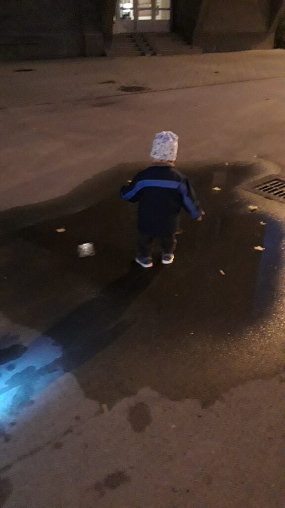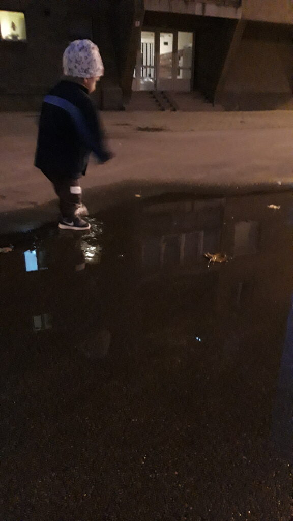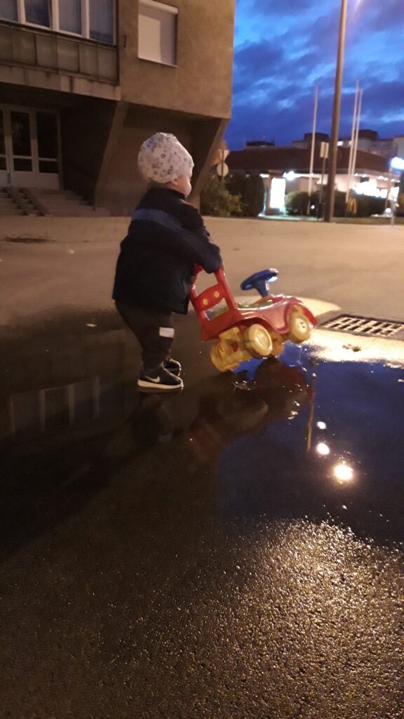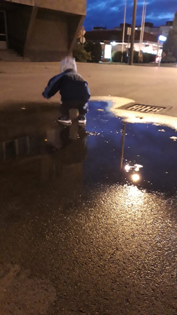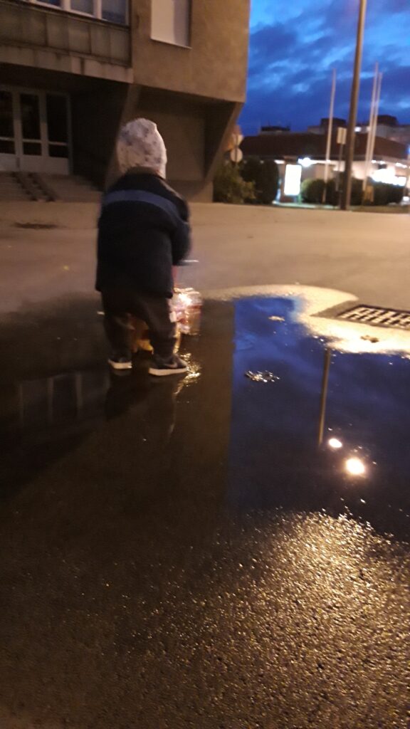 Majd már miután nem tudtak benn tartani, így mentük is pocsolyákat vadászni.