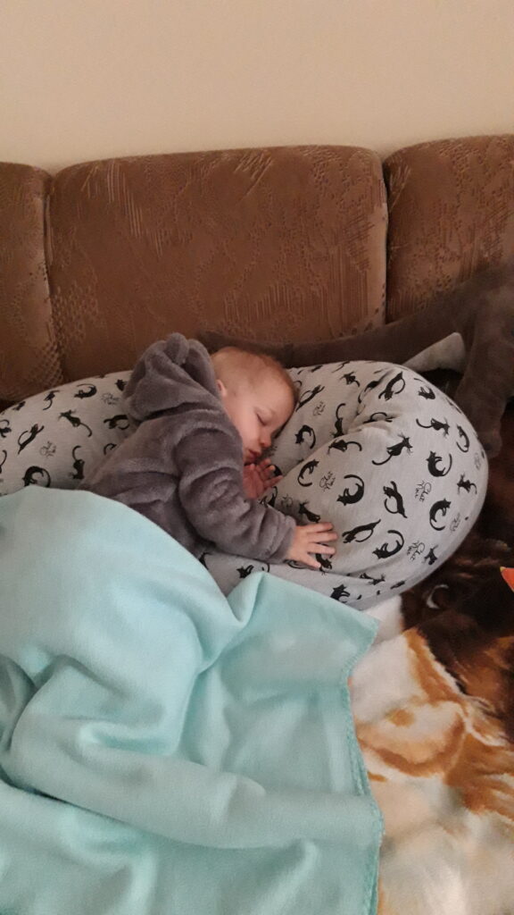 Vasárnapra virradóra, a szokásos 1 üvegnyi tejecske helyett 2 üveg is lecsúszott. Hiába na nagyon ki voltam, délelött Apával aludtunk a szülőknél, majd nem éreztem jól magamat, így a nappaliba rajta feüdve aludtam el. Jó hosszan aludtunk. Egészen délutánig, én megkaptam a mackó felső alsómat. Igazából azt mondták mint a kismedve kezdem a téli álmot. Nem is értem miért mondták rám ezt.