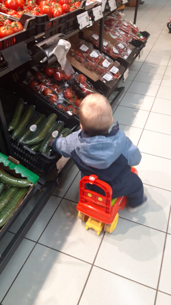 Hétfő délután a szülőkkel elgurultam bevásárolni saját verdámmal mentem és élveztem a szabadságot hogy mindent megnézhetek közelről. A zöldségeket és gyümölcsöket is megvizsgáltal leellenőriztem és mindegyik friss volt.