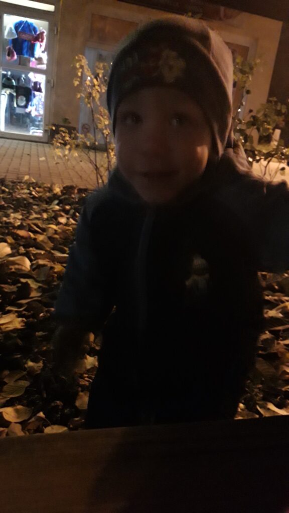 Délután elmentünk sétálni. Élveztem a levelek közötti mászkálást.