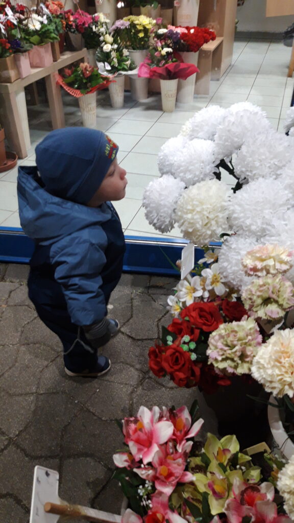 Hazafele megtaláltam a virágost. Próbáltam megszagulni a virágokat de nem volt illata. Vagyis valami mű illata volt.