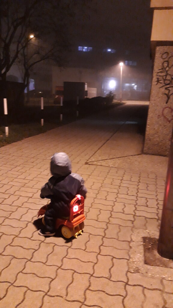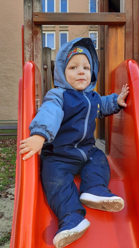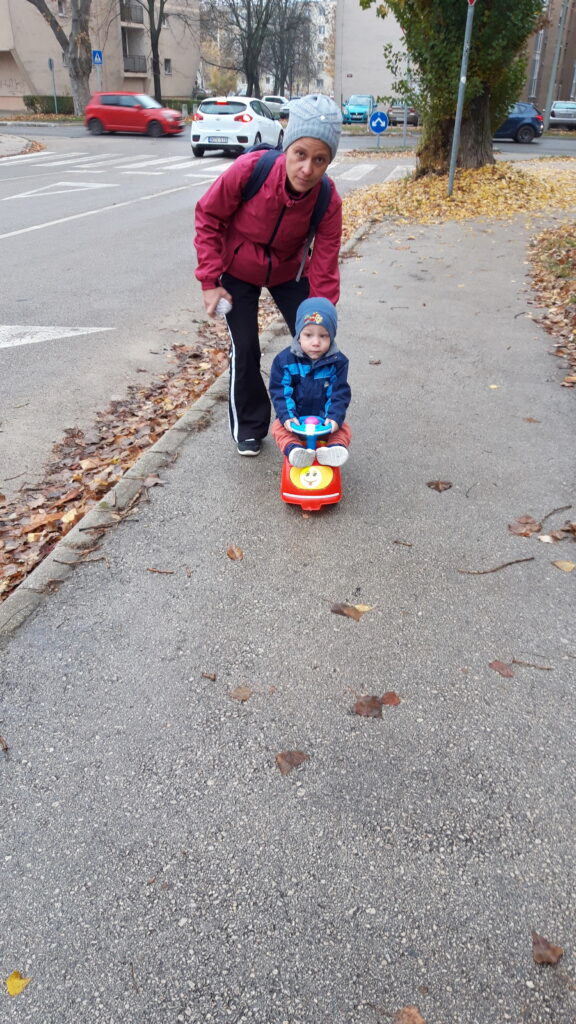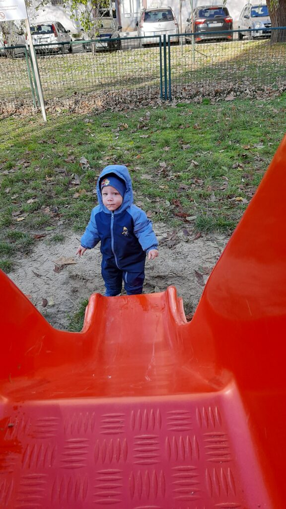 Kedden elküldtük apát a dolgozóba már el se köszöntem tőle én már nagyon éhes voltam és csak a hűtőre és az trónomra koncentráltam. Délelött jó nagyot sétáltunk kinn. Elmenntünk a sós kiflimért. mert ami jár az jár, majd a játszótéren mókáztunk jó sokat.