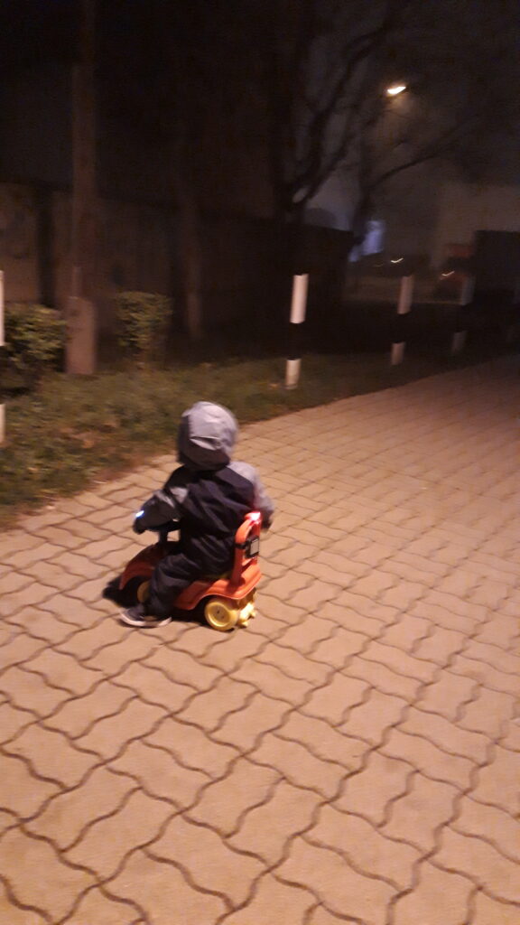 Ha már így végig ettem a menüt akkor ezután jó nagyot aludtunk Apával. Majd késő délután kimentünk sétálni. Jól megmozgattam a szülőket mert a bringa támasz alatt én is „éppen hogy átfértem”. Így nekik is át kellett menni mindegyik támasz alatt. Jó kis esti torna volt. Hazafele lusta taxival vitettem magamat. A vacsi után nem kellett ma sem ringatni.