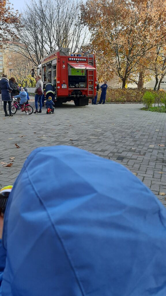 Hétfőn Anyával elindultunk bevásásrolni. Menet közben láttunk villogó autót. Persze meg kellett állni megnézni mit csinálnak.