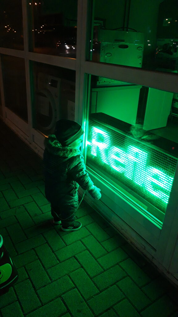 Délutánrea pedig egészen új outfittel mentünk ki. Persze estére jó kis sétát nyomtunk megnéztünk valami új dobozt ahova majd le tudjuk rakni a használt olajunkat. De én a használt olajamat a pelusab ürítem. Na hogy is van ez. Majd kiderült a gyakorlatban. Az esti sétánál kanyarítottunk egy kurflit és újra megnéztük a lámpákat.