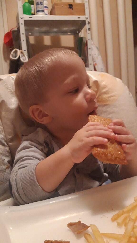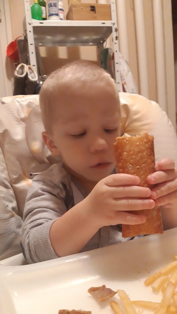 Illetve amíg néztem addig Anya eltűnt, majd megkerestük Apával. Valami ismerős étel illat terjedt a levegőben. Jó is volt mert már kezdtem éhes lenni. Hazafele beugrottunk nekem sült krumpliért. a haza utat nehezen vártam már meg így út közben elkezdtem nassolni. itthon a vcsoránál a szülők húsos zöldséges , tészás ételét jól megdézsmáltam. Finom volt csúszott lefele.