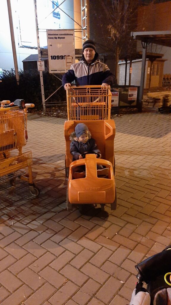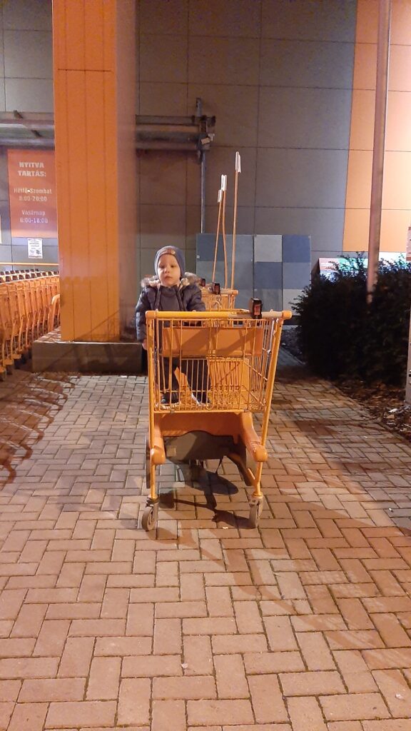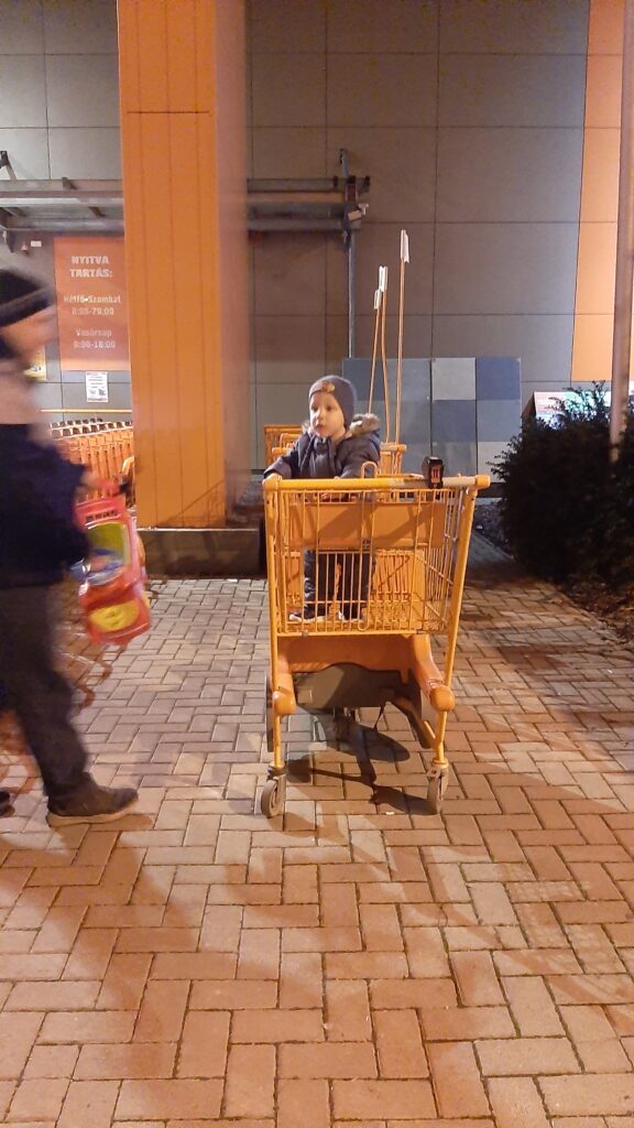 Apával egy kényelmes bevásárló kocsival ralliztam a boltba.