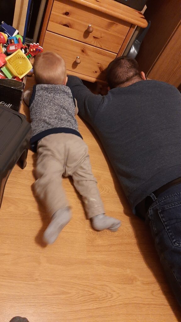 Csütörtökön szép napunk volt így kimentünk sétálni. Bevásároltunk kenyérből és kifliből. Délután már mással is spájzoltam. Elkezdtem elrejtegetni a játékokat. Alig vártam, hogy Apa megjöjjön mert neki megmutattam honnan halássza ki őket. Jó kis móka volt Ő kivette én meg azonnal vissza is tettem.