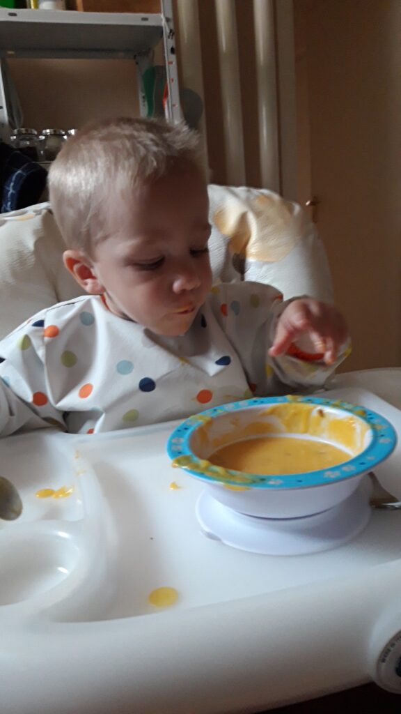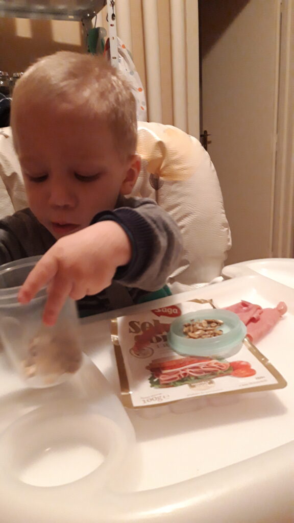 Na attól végem van. A husi is finom volt a leves után. Jó nagyok aludtam a tele pocakkal. Majd itthon fenn kicsit rohangáltunk bohckodtunk. Apát újra rávettem játszunk eldugós és koppanós játékot. Az esti sétánál kicsit furcsa volt az idő mert mint egy nagy tejfölös dobozban úgy járkáltunk. Percről percre sokkal kevesebbet láttunk. Tettünk egy séta kört majd hintáztunk. Sajnos a csúszdára már nem engedtek fel mert állítólag vizes volt és nem lhet látni semmit. Elfogadtam az indoklást. visszafele felsétáltam a lakásba nem kis teljesítmény volt. Este várt már a vacsora és a pörkölt magok. Új ízeket találtam ki finom lehelet vékony sonka napraforgó maggal.