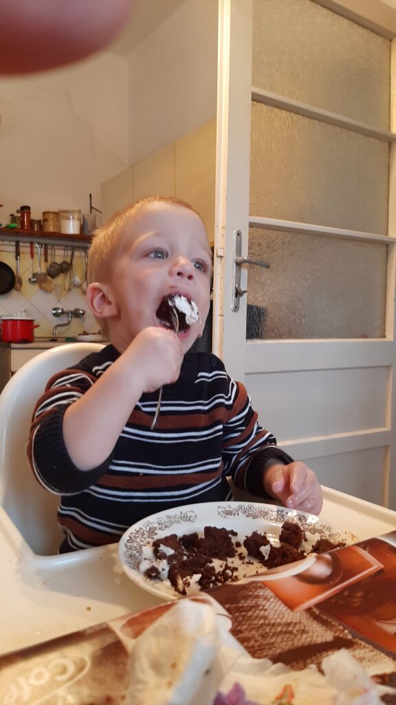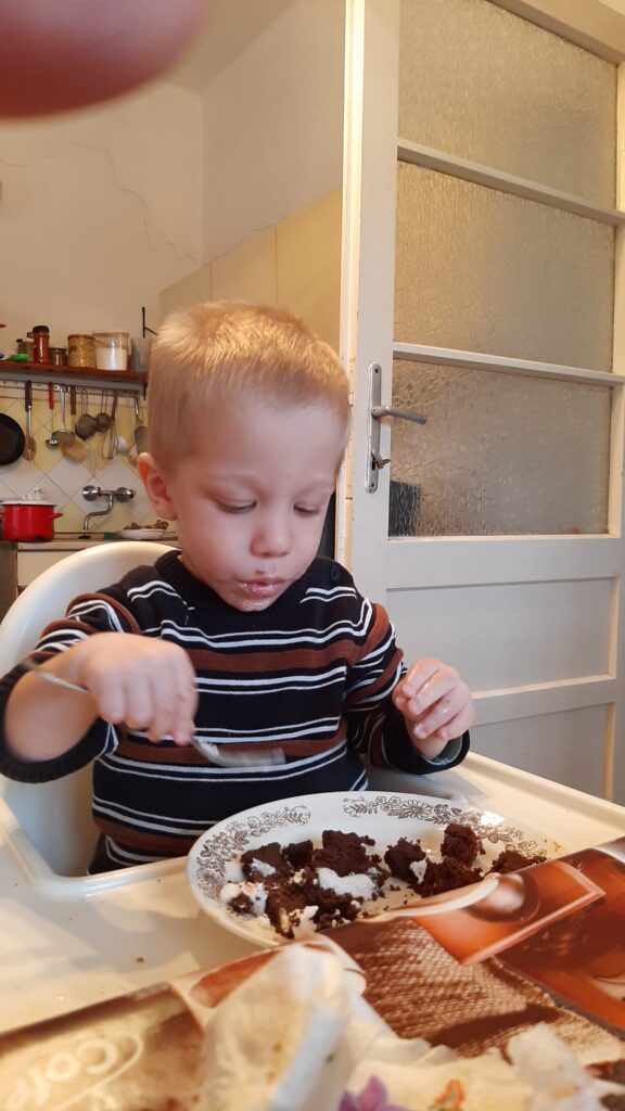 Már vártam az ebédet mert ettől a sok mozgástól már éhes voltam. Szerencsére húsleves volt. Honnan tudják ezt a szülők ezt én mit szeretek. Csűrtem is be kanállal a levest. Majd következett a főétel, de ez most nem mozgatott annyira mert láttam mi van desszertnek. Arra fájt jobban a fogam toltam is be a barna sütit. Jönnek fel a kalóriák.