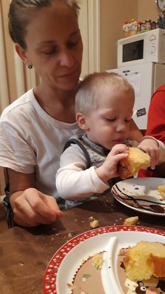 Kedden hajnalban a nagyival bandáztam. Rendberakta a pelusomat és végignéztük a könyveket. Reggelire még a karácsonyi maradékot ettük. Nekem nagyon bejött a kuglóf, főleg Anya ölében ülve. Így mindíg finomabb.