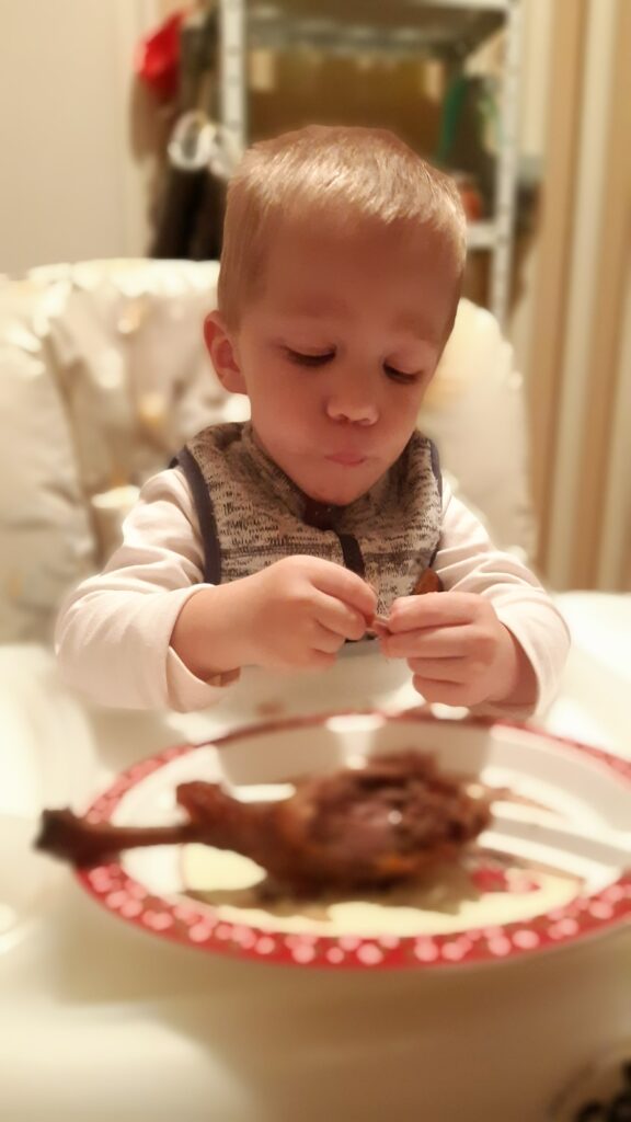 A délelött elment a nagy mókázással megmutattam a nagyinak és a nagynéninek a konyhámat. A szinkron főzés még nem megy de tanítom őket. Persze a receptet ők adják én mondom mit hogy kell hazsnálni a konyhámba. Apropó ha már főzés ebédre nyeles csontos husit kaptunk. Ej de finom is volt.