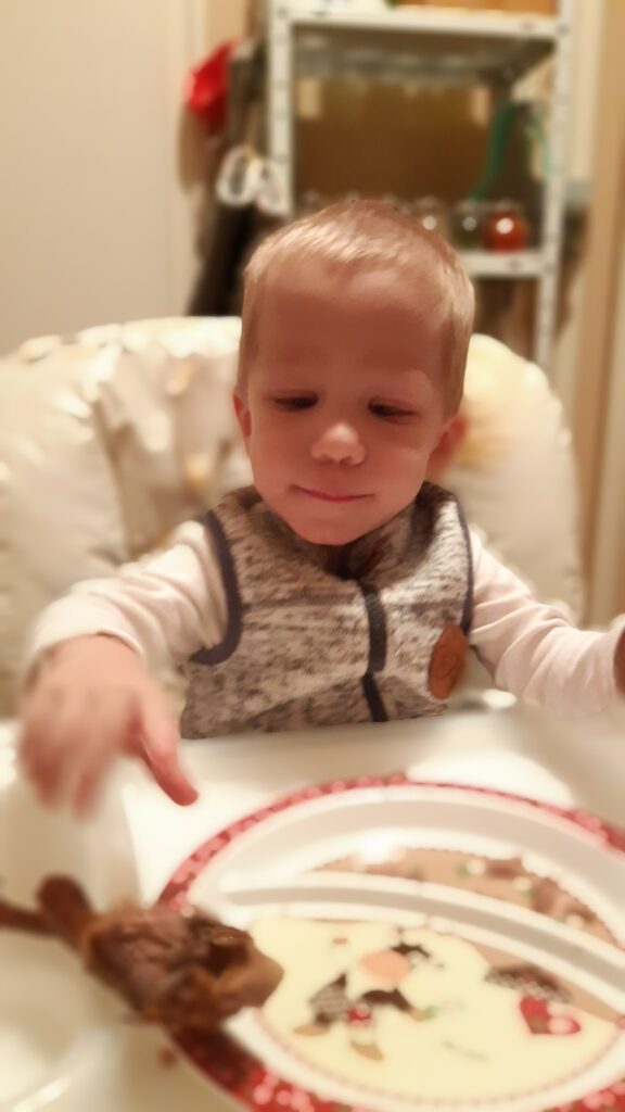 Szombat reggelt virslizéssel nyitottuk. Azt mondták új év napján ezt kell enni. Nekem nem volt ellenvetésem. kiderült a szülők készültek nekem is egyedi virslivel.