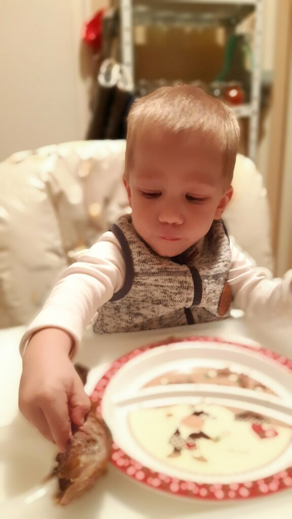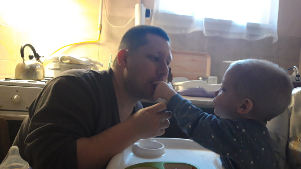 Na ez már valami. Apa egyik húspogácsáját szép aprólékosan elfogyasztottam. Már megint azt hittem megetetett, pedig Én engedtem hogy adja a falatokat. Estére jó kis fürdés után jó nagyot aludtam.