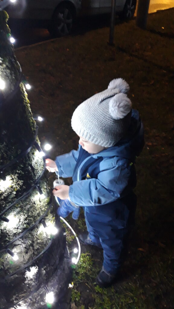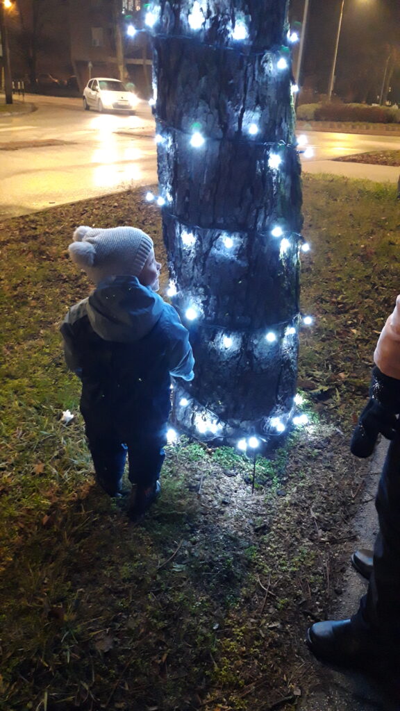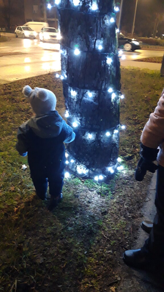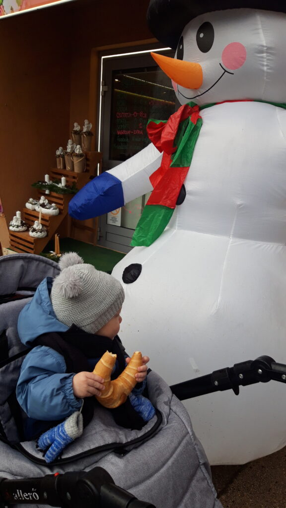 Sőt mikor elértünk a kedvenc kiflisemhez akkor még egy hatalmas hóembert is látunk. Óh igen volt ám izgalom és újdonság. Az ebédet végig kóstoltam kinek mi jutott, a hatalmas bundás husiból is jó adagot elfogyasztottam. Persze Apa már megint azt hitte Ő okosabb mint én, de én csak hagytam magamat hagy etessen. Falatonként jó sok elfogyott, sőt az alvás után megettem a másik felét is a bundás husinak. Este megnéztük a kivilágításokat.