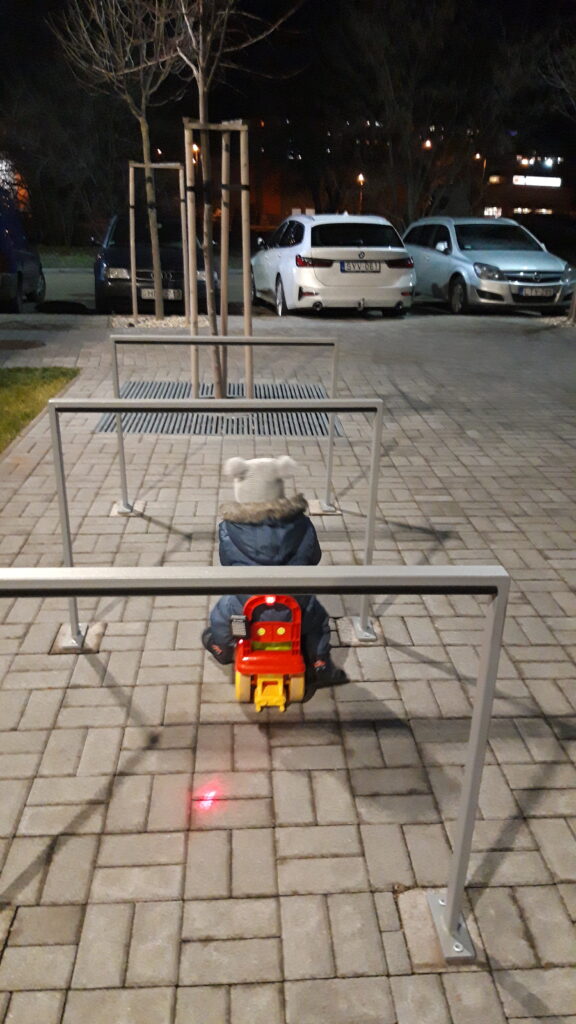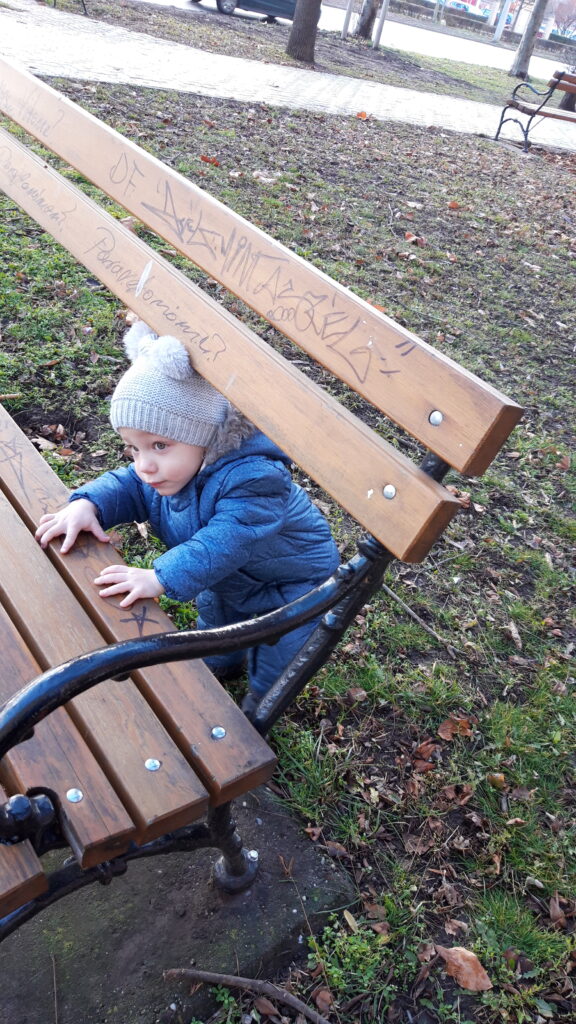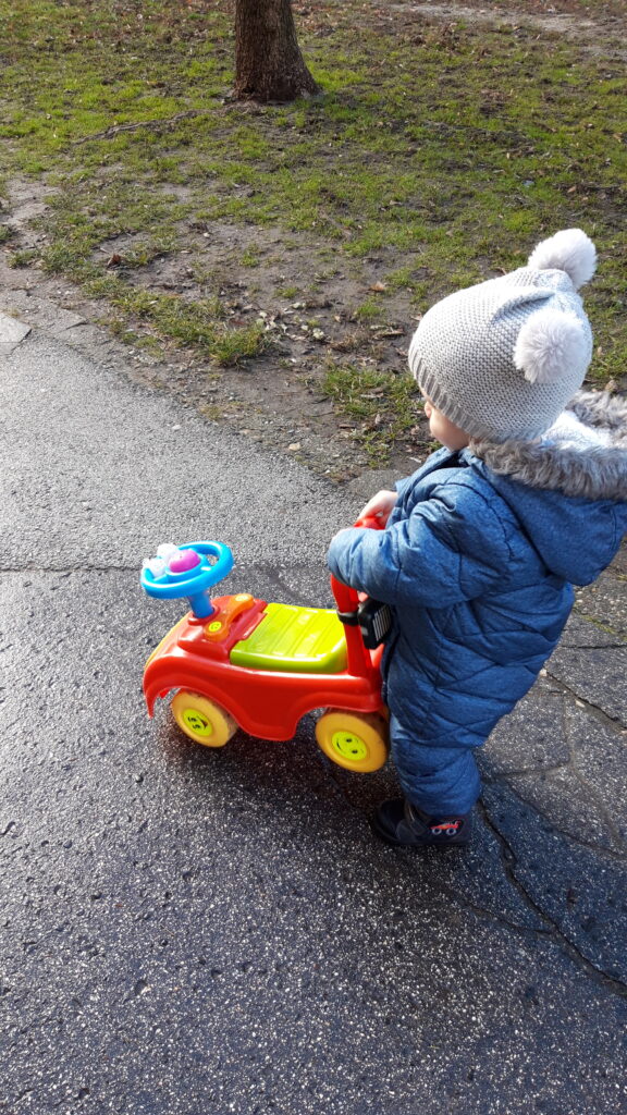 Majd a délutáni sétánál Apával mentünk le találkoztunk nagy kutyussal ami gyerek barát volt így nem bánta ha én is kiélem simogatási hajlamaimat. Majd mikor elvitték a kutyus találtam magamnak akadály pályát.
