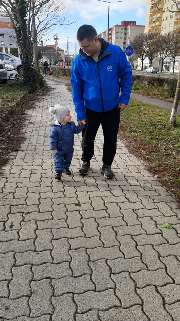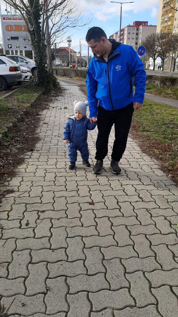Pénteken éreztem valami furcsaság van. Délelött elmentünk Apával kenyérért. Hazafele úton elbohóckodtunk én engedtem hogy adja a kifli darabokat így hazaérve szinte csak a morzsát tudtuk felmutatni Anyának, meg a papírt vettünk ám kiflit is.