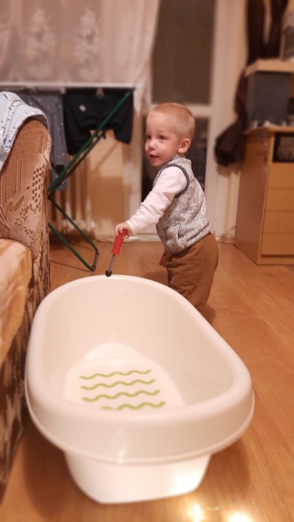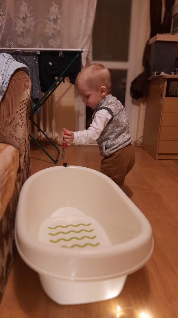 Délelött jól bevásásroltunk több helyen is. Én hiába mondtam menünk már mert baj van a pelussal. A szülők nem vették a jelzést. Csak otthon döbbentek rá itt komoly átázási problémák vannak. Így teljes ruhatár csere lett. Az ebéd és alvás után már kaptam is feladatot. A csavahúzóval kellett megoldani a csavaros kérdéseket.