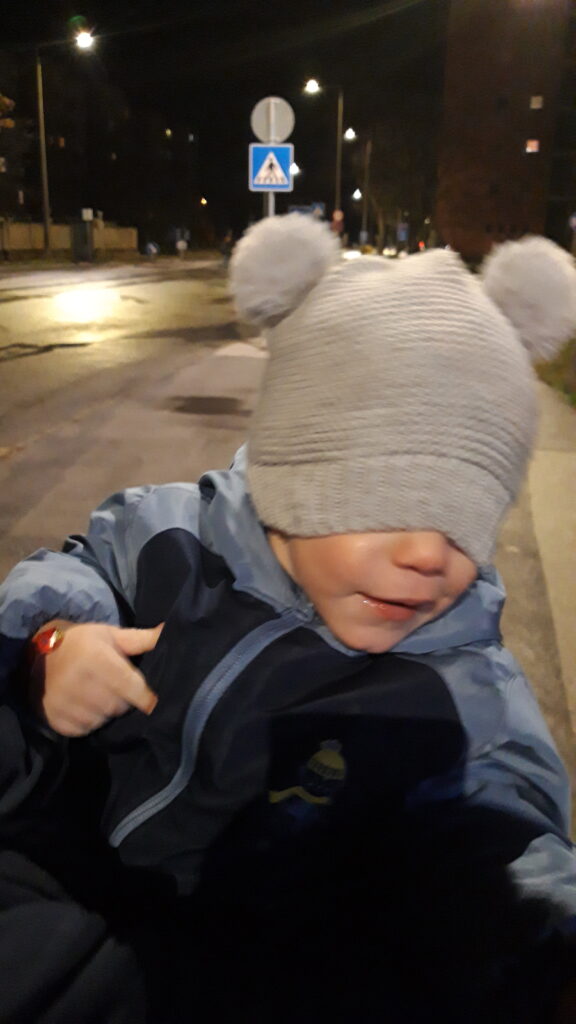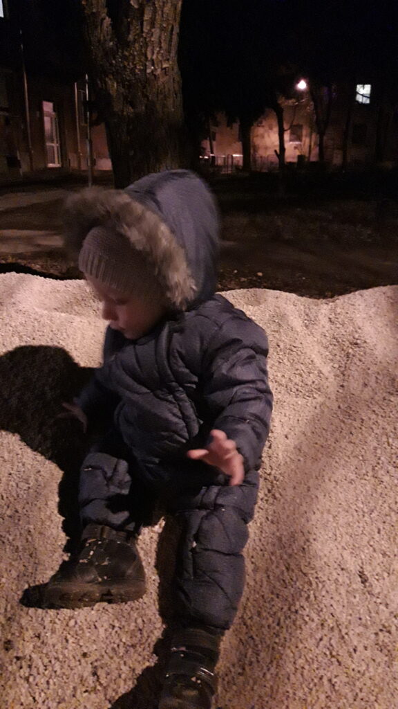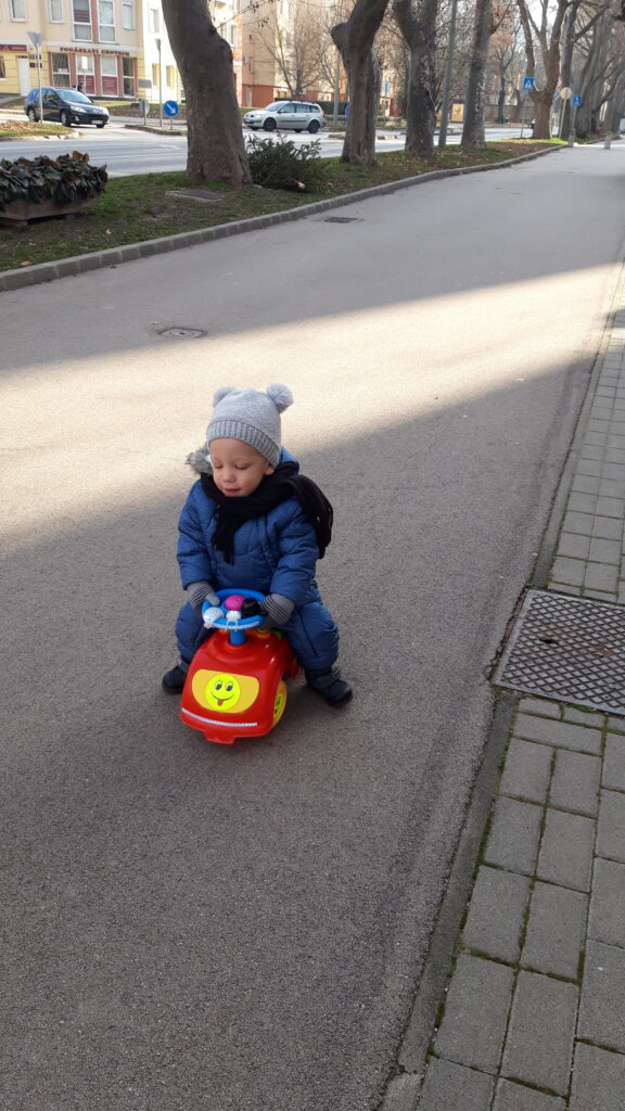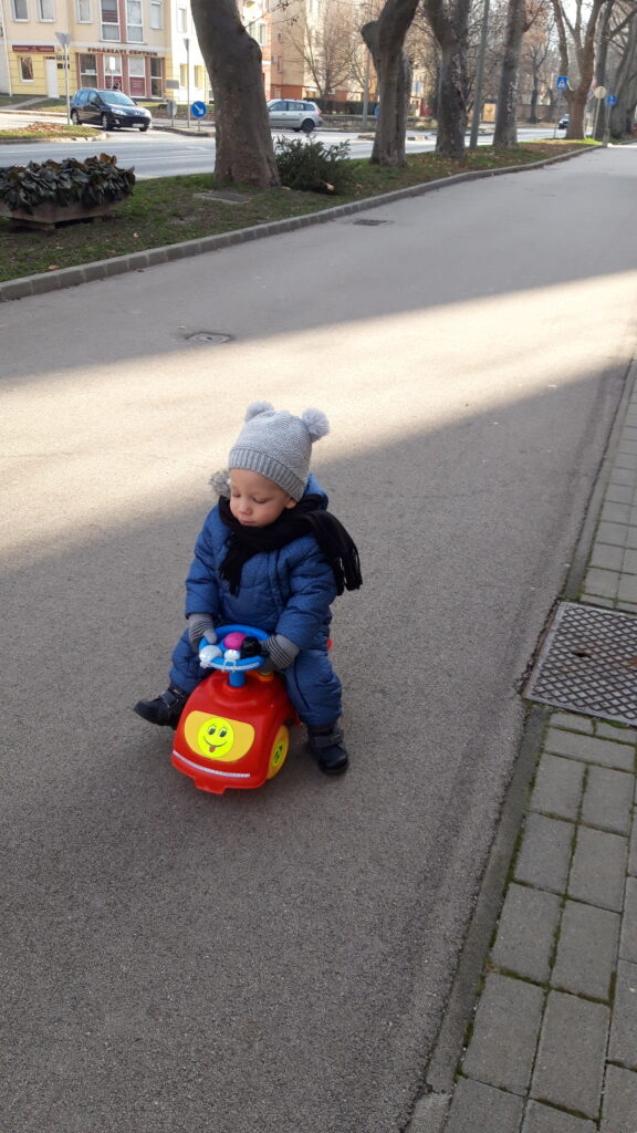 Jó lesz ez nekem majd játékra. Délelött Anyát itthon hagytuk és elindultunk kifli és kenyér beszerző körútra. Menet közben találkoztunk nagyobb babákkal akik tudtak beszélni már a felnőttekkel.