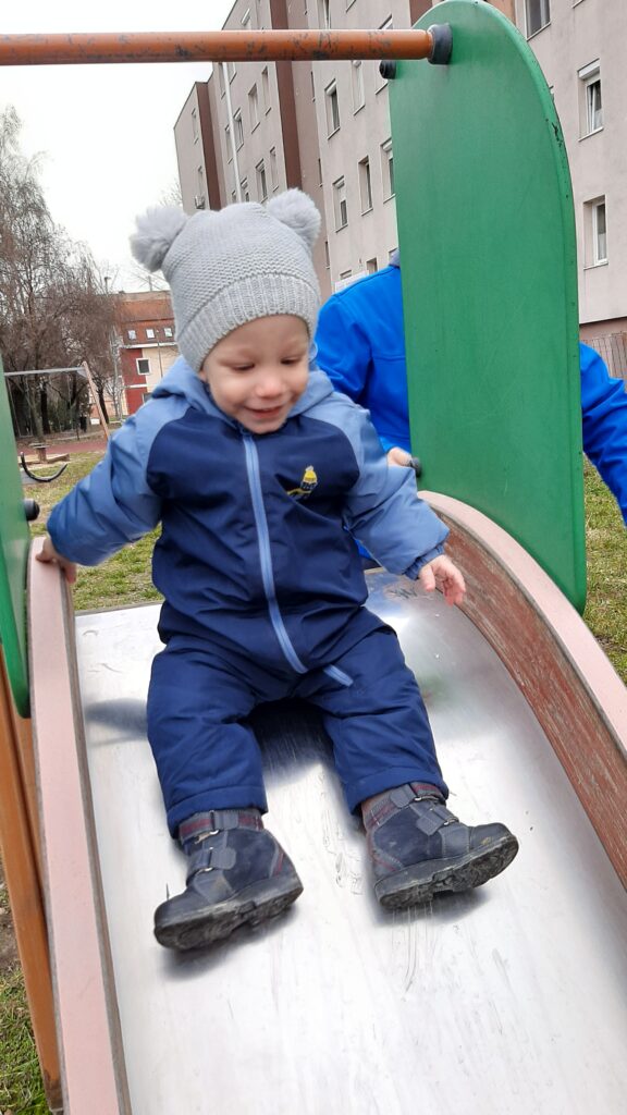 Egészen jól ment egyedül a csúszdázás. Sajnos ide még nem úgy tudok felmnenni, kell a szülői segítség.