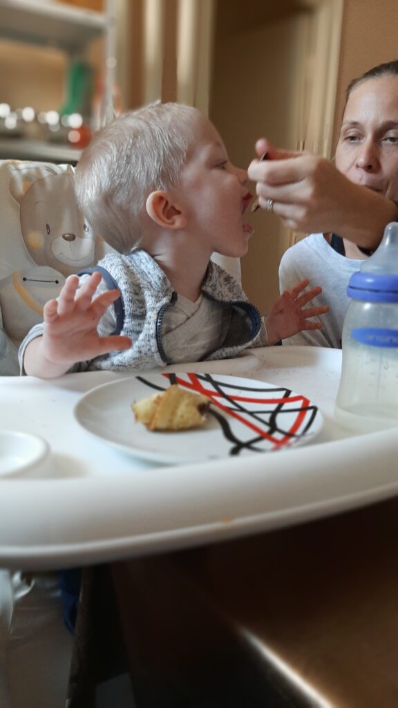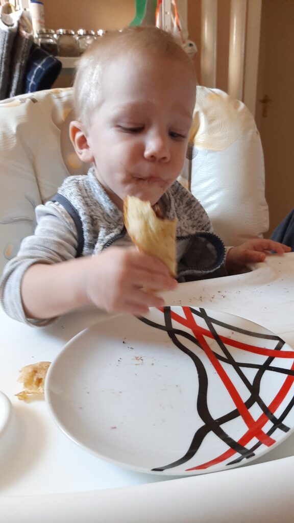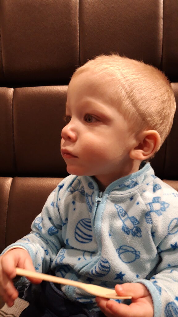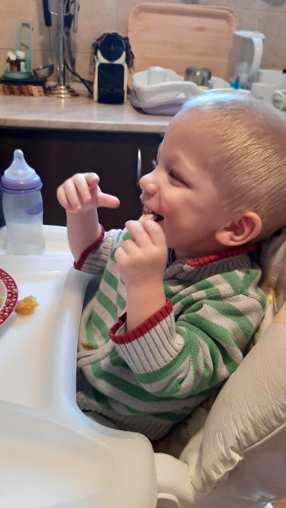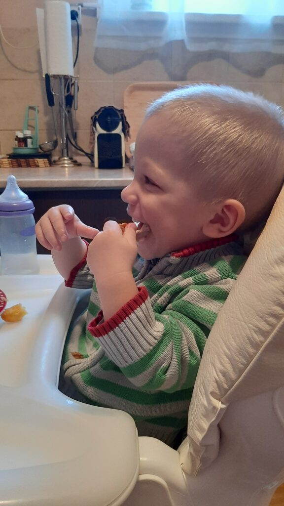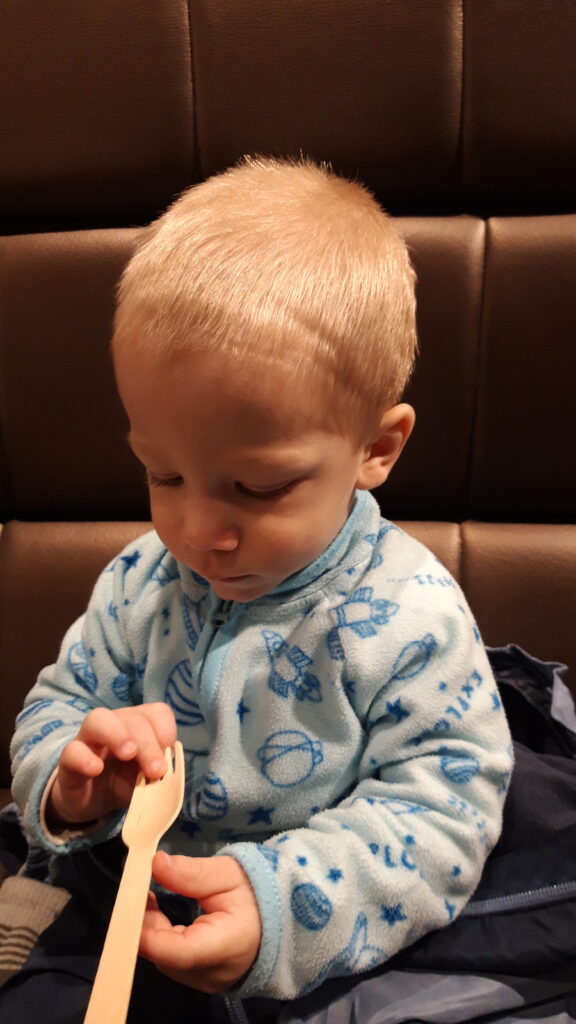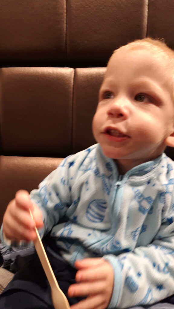 Majd bevásásroltunk egy kicsit. Már kezdett lemenni az energia szintem mikor éppen akkor kaptam meg az almalét. Jaj ez már nagyon kellett nem is hagytam belőle sokat csak egy kortyot. Ebédre én kértem mindent, rizst bulgurt, husit, halat banánt mi szem szájnak ingere. Persze csak bebolondítottam a szülőket, mert rájöttek a trükkre a rizs nagy része az etető székbe landolt. Semmi baj volt még. Majd közösen aludtunk egy jó nagyot. Mikor felébredtünk már sötét volt. gondolkoztam is átaludtuk az estét? Nem még nem. Az esti sétánál haverkodtam a fodrásszal, bárhogy is mentem közelebb Ő mindíg arréb lépet. Megvártuk Anyát a vásárlással majd a nagy verdából elhoztuk a pelus hadtest különítményt. Már idej volt mert fogyott a készlet. Az esti vacsoránál, a kakaó és a tej is csúszott persze nem egyszerre de mindegyik az üvegből. Fürdésnél megint előkerült a tűzoltó autó. Többször is megtöltöttük vízzel. Ma sem kellett sokáig altatni.