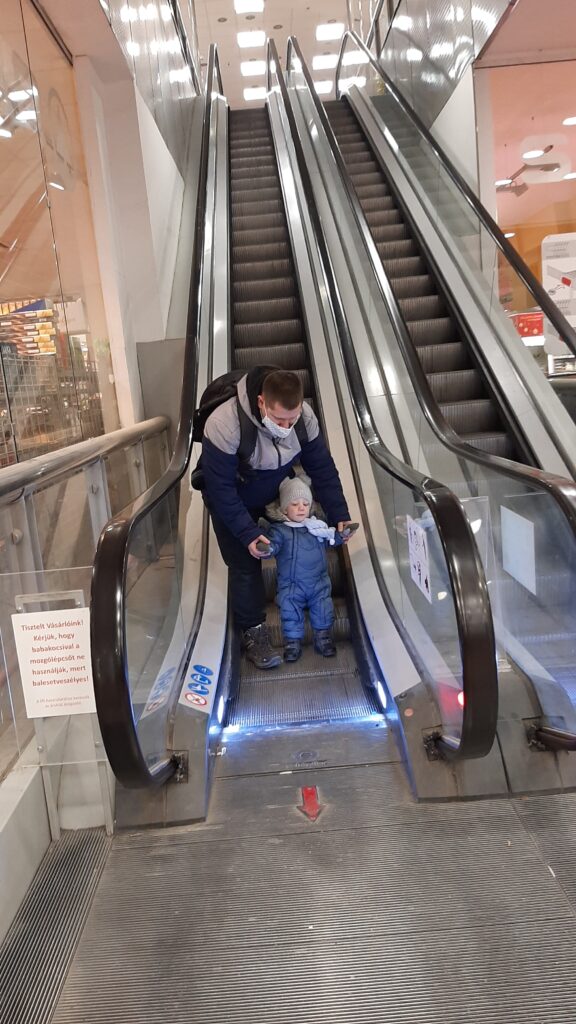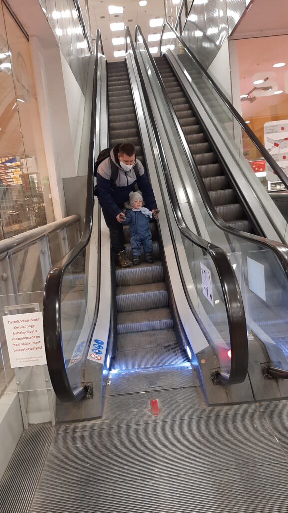 Sokáig el néztem volna a népes baba társaságot de mentek be, így mi is mentünk a szokásos kenyér és kifli adagunkért. Ha már ott voltunk akkor benéztünk milyen hadi eledelt kaphatunk. Uhh húsleves na az finom az jöhet nekem. Már vártam mikor érünk haza mert jól ki is sétáltam magam és éhes is voltam. Ebéd után egy hosszasszabb párbeszédet vívtm Apával, de nem értette meg nem akarok aludni, de fáradt is vagyok. végül is hagyott és az ágyon el is aludtam. Ébredés után sétára mentünk. Ha már ott voltunk az áruházban akkor beugrottuk pár körre a mozgólépcsőnél.