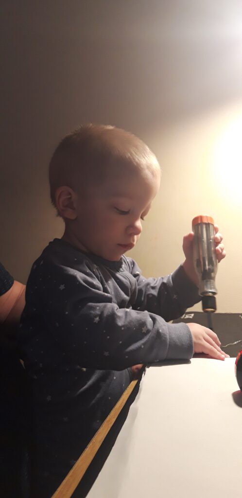 Péntek reggelre virradóra megleptem a szülőket nem kellett hozzám felkelni. A reggeli elött találtam magamnak új játékot. Ezt Biztos Apa tette ide.